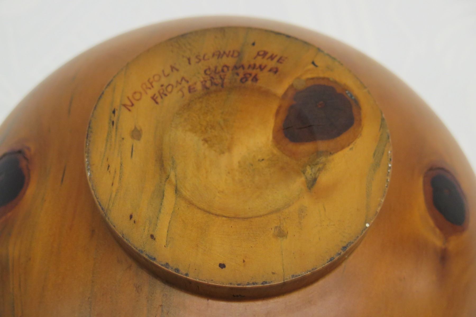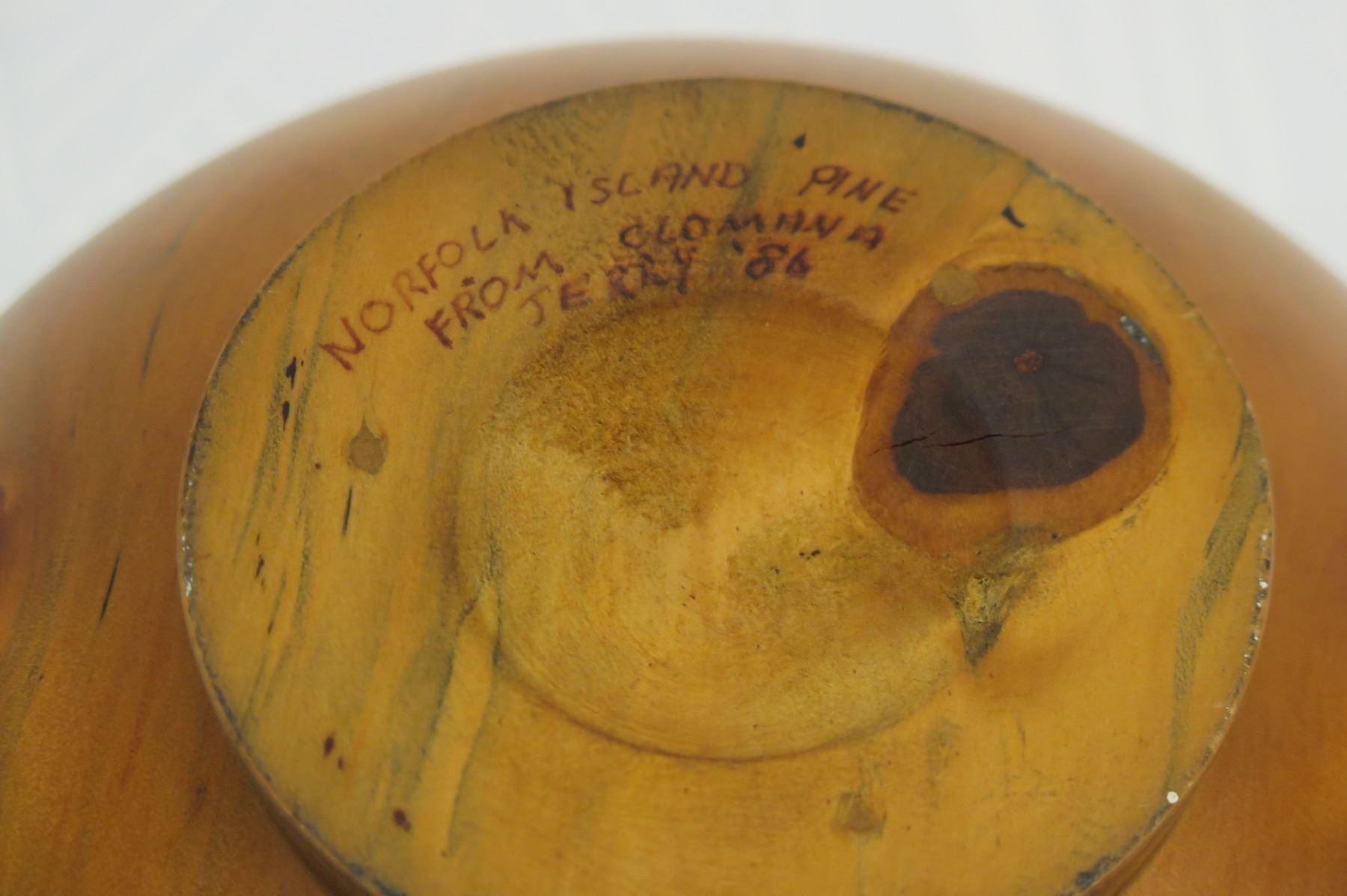Footed Norfolk Pine Wood Bowl w/ Lip Detail, Artist Clomana Jerry '86, Approx. 8.5" Dia (top), 4.5" Tall