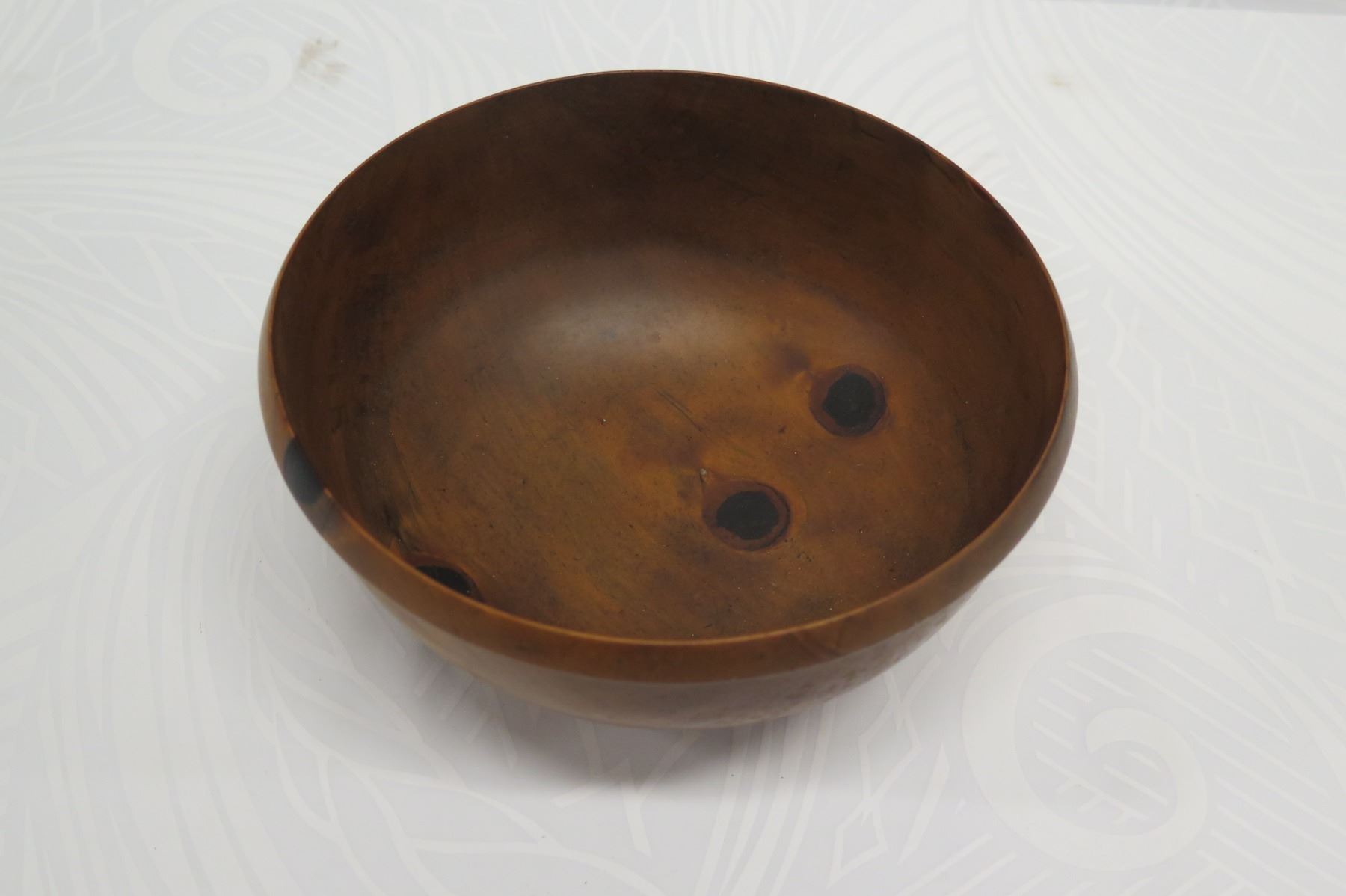 Footed Norfolk Pine Wood Bowl w/ Lip Detail, Artist Clomana Jerry '86, Approx. 8.5" Dia (top), 4.5"