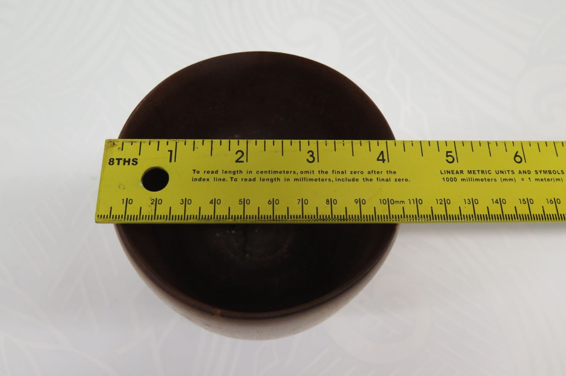 For reference there are ample photos of each object in the online auction catalog. In the photos, we show a golf ball next to each bowl or object for scale and sizing perspective. We also provide dimensions of each item.