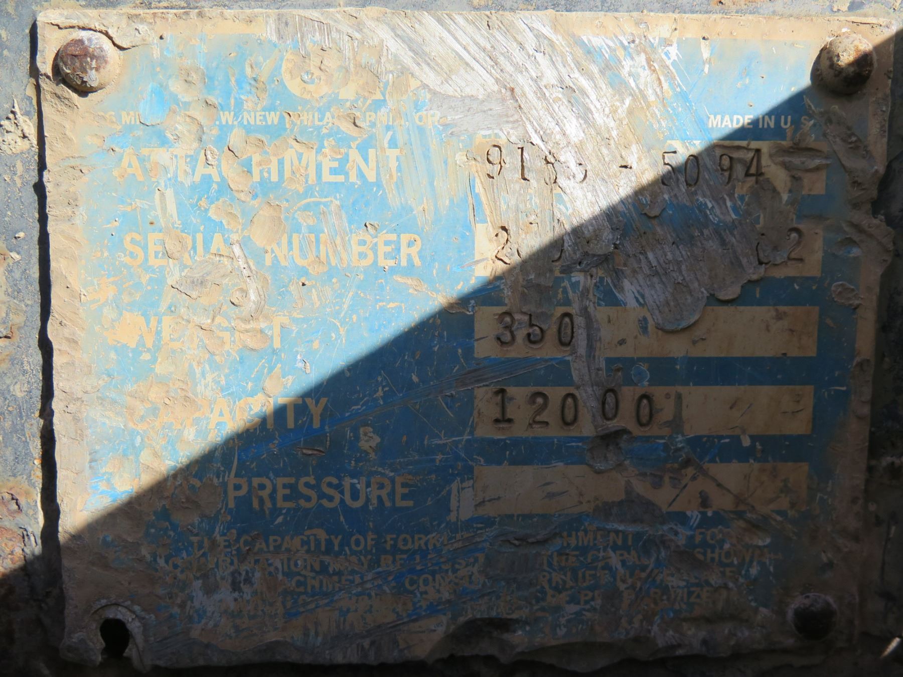 Forklift 2 Section Attachment 9155 Capacity 12000 Lbs. 44"x32"W