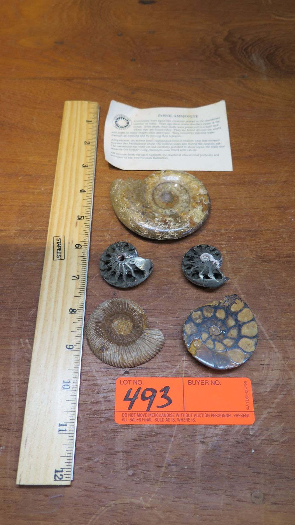 Fossil: 5 Pieces Ammonite from Jurassic age (circa 180 million years ago), Cut & Polished