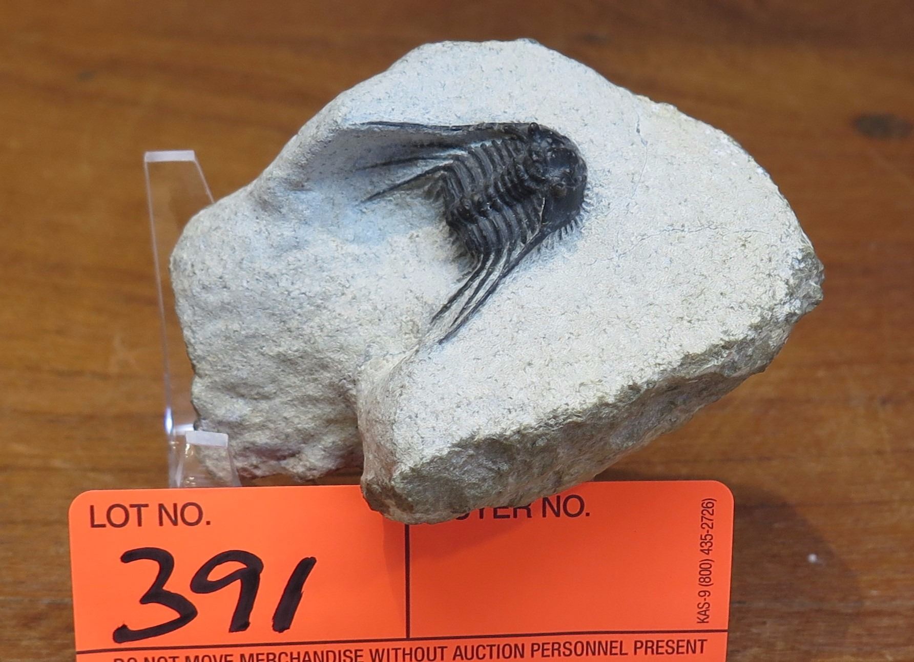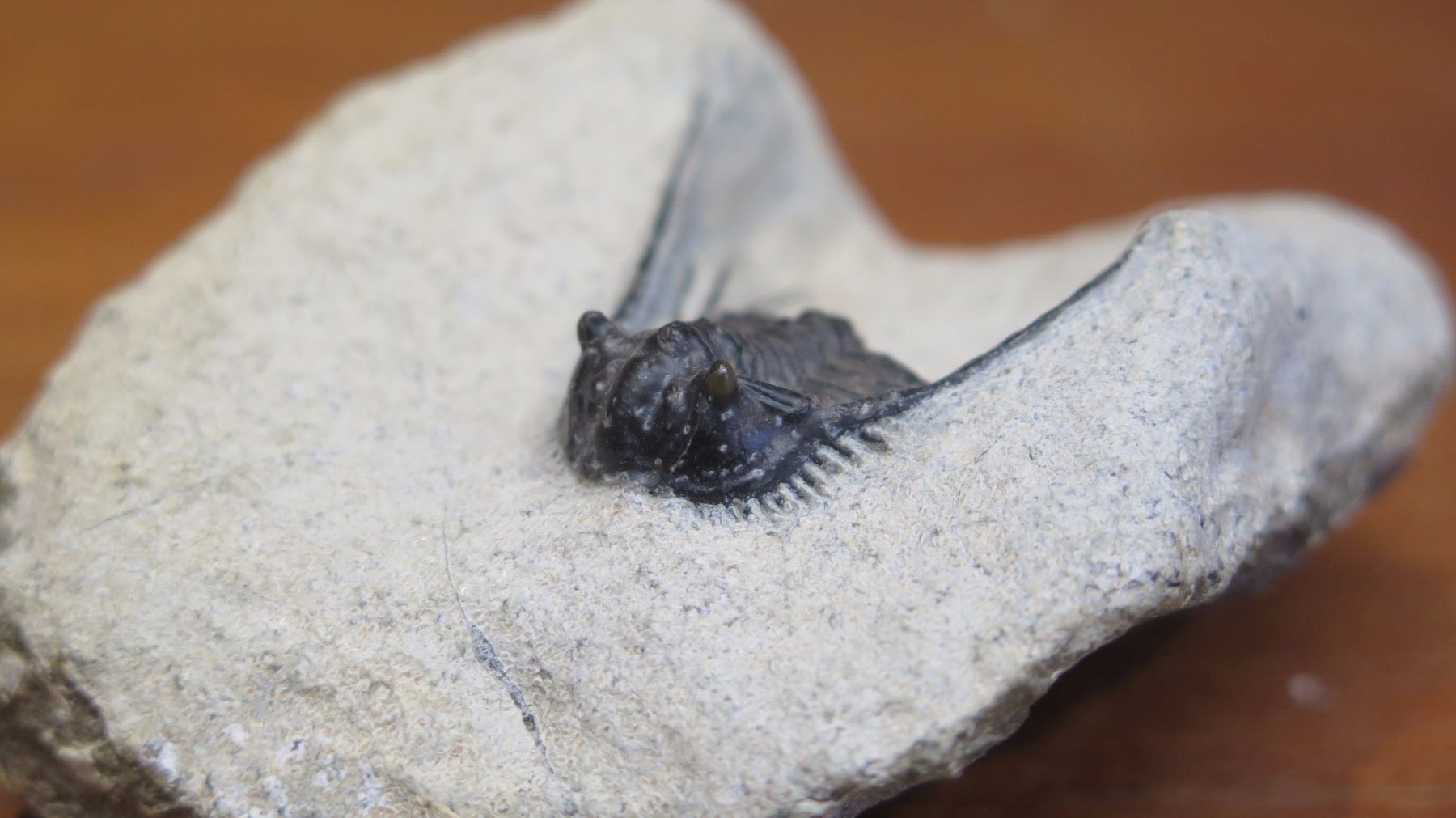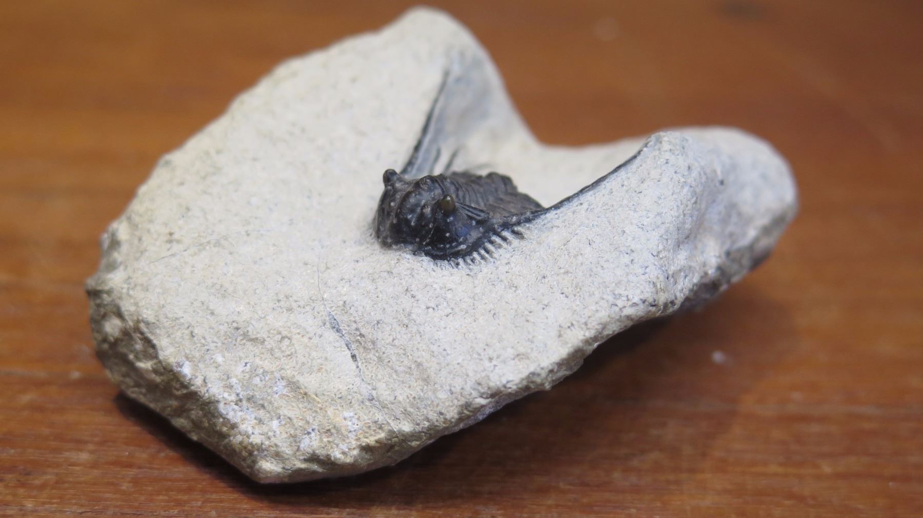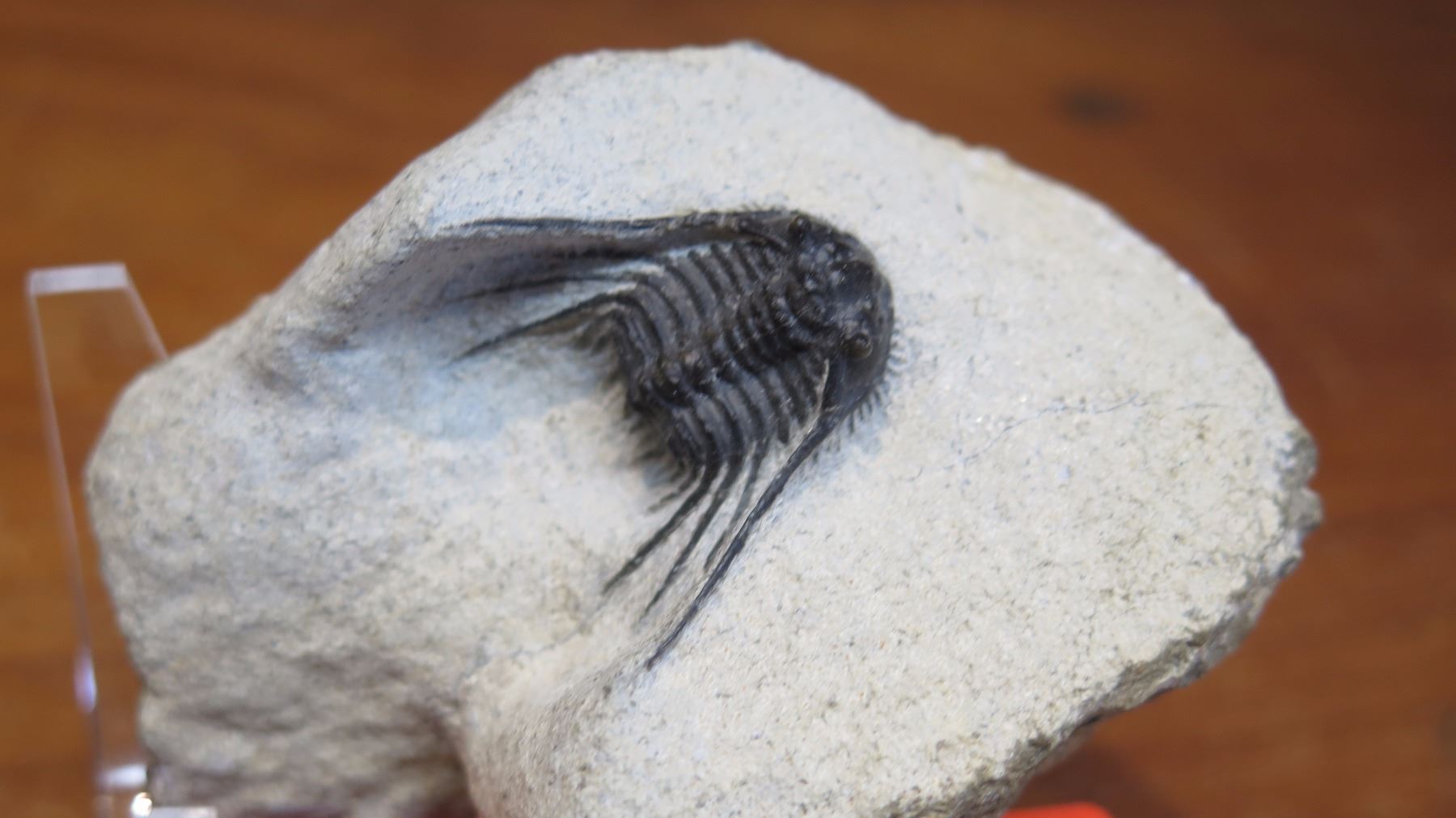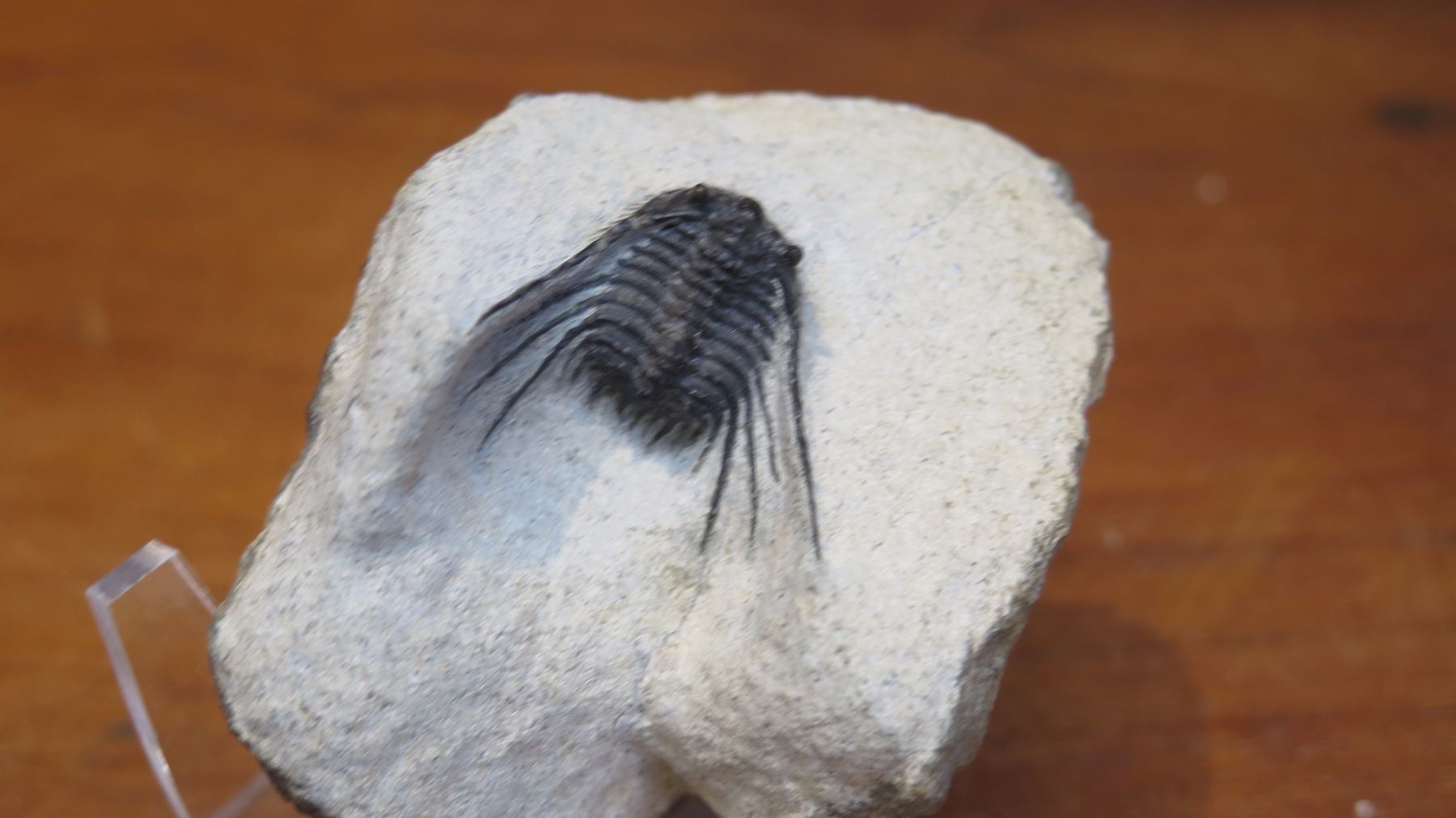 Fossil: Black 3-D Trilobite (Acidaspis, circa 450 mil yrs) Protruding from Rock Segment