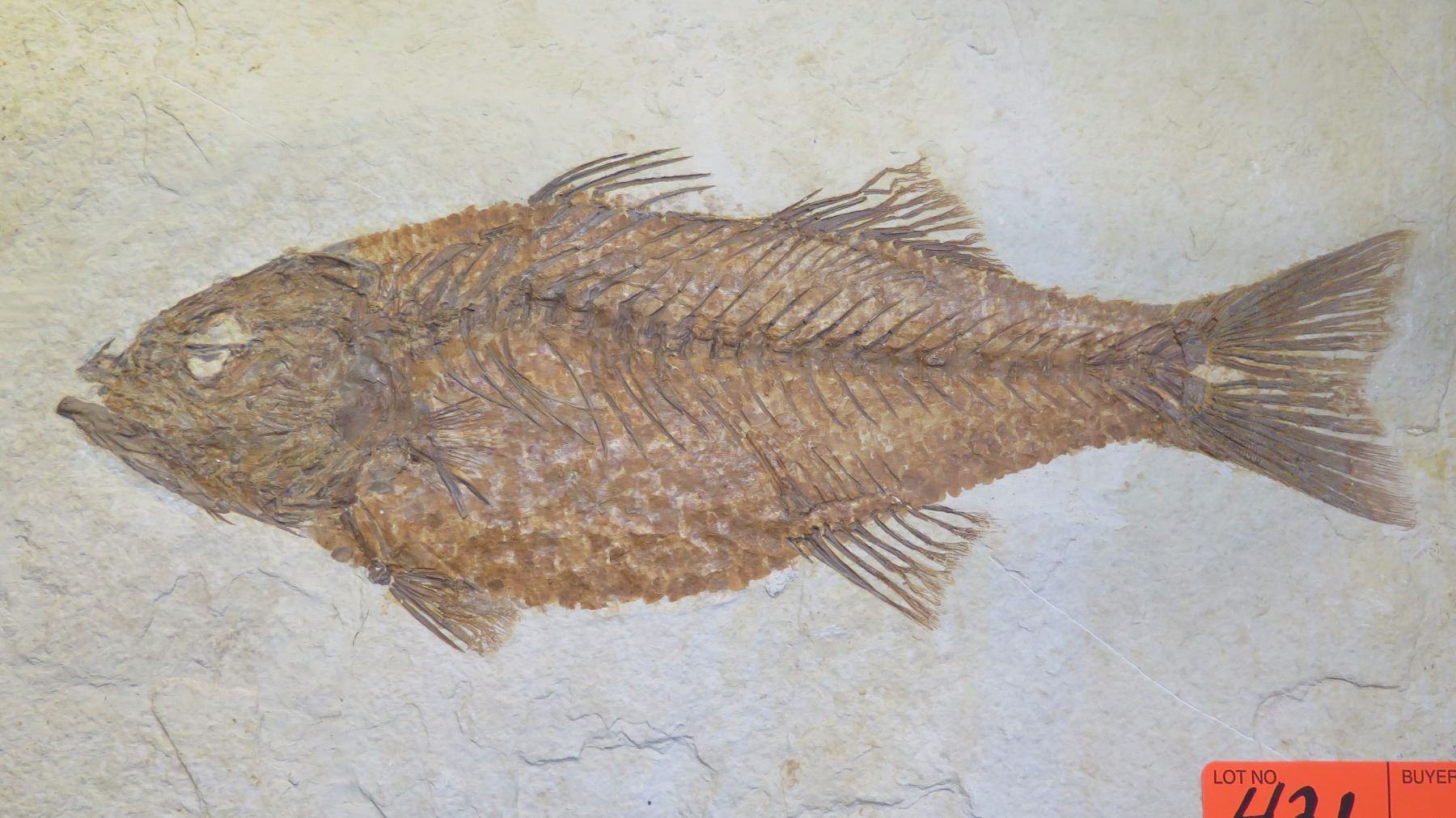 Fossil: Bony Fish on Limestone (36 to 58 million years), Green River Formation, Wyoming