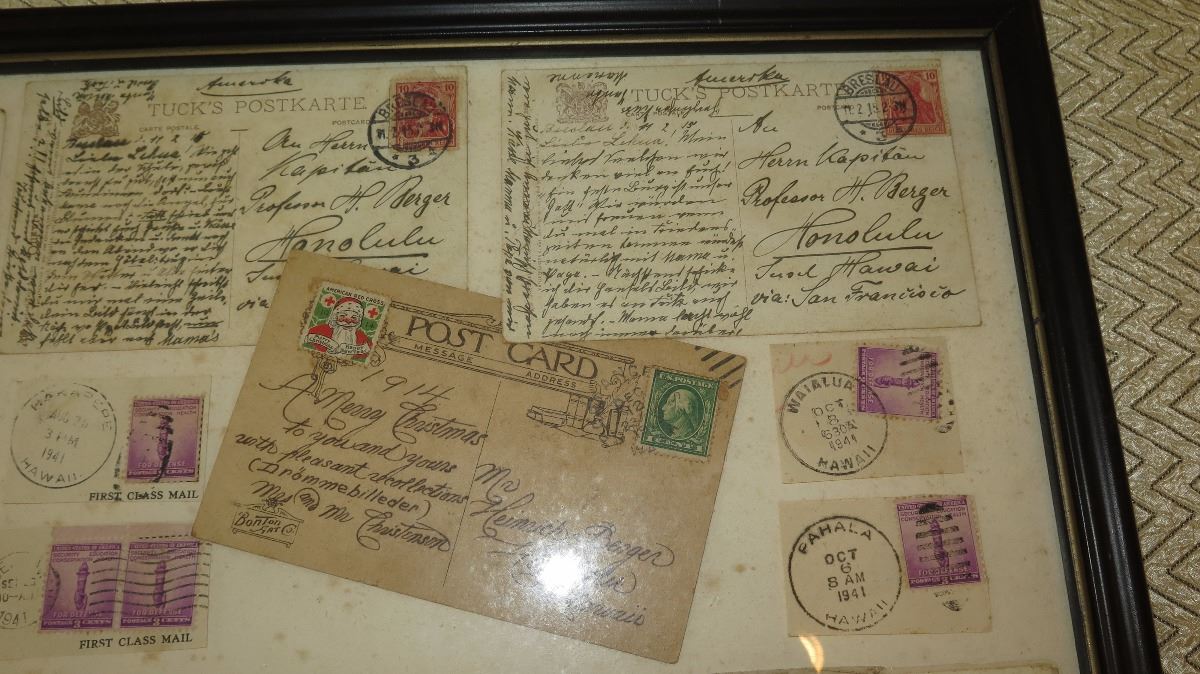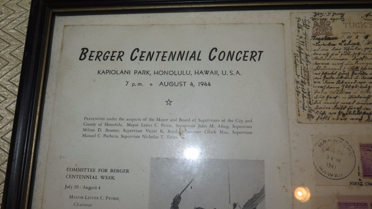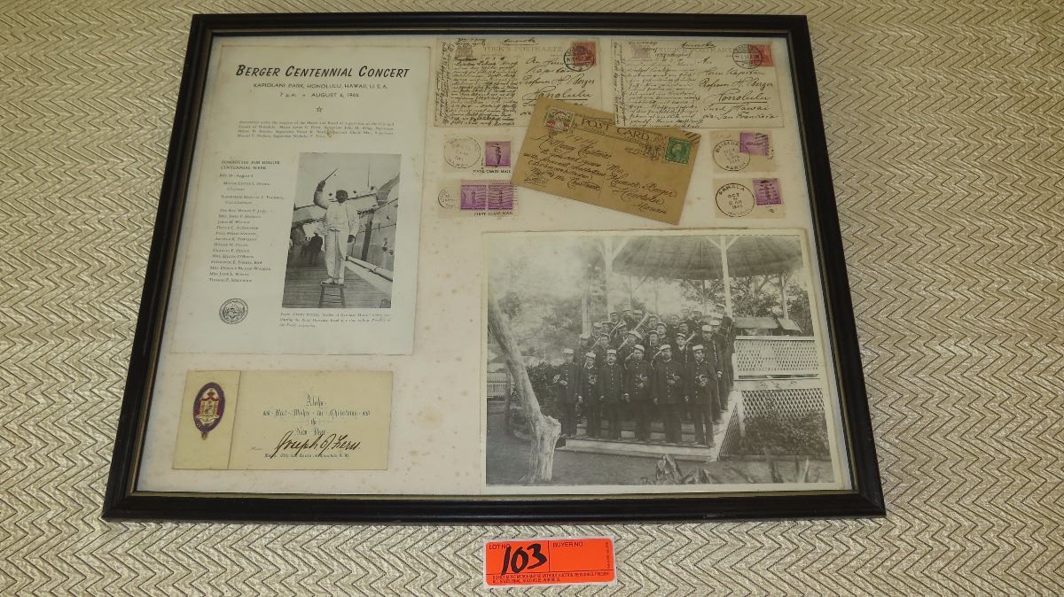 Framed 1914 & 1941 Postcards/Berger Concert Flyer/B& W Photo 21X17 Frame