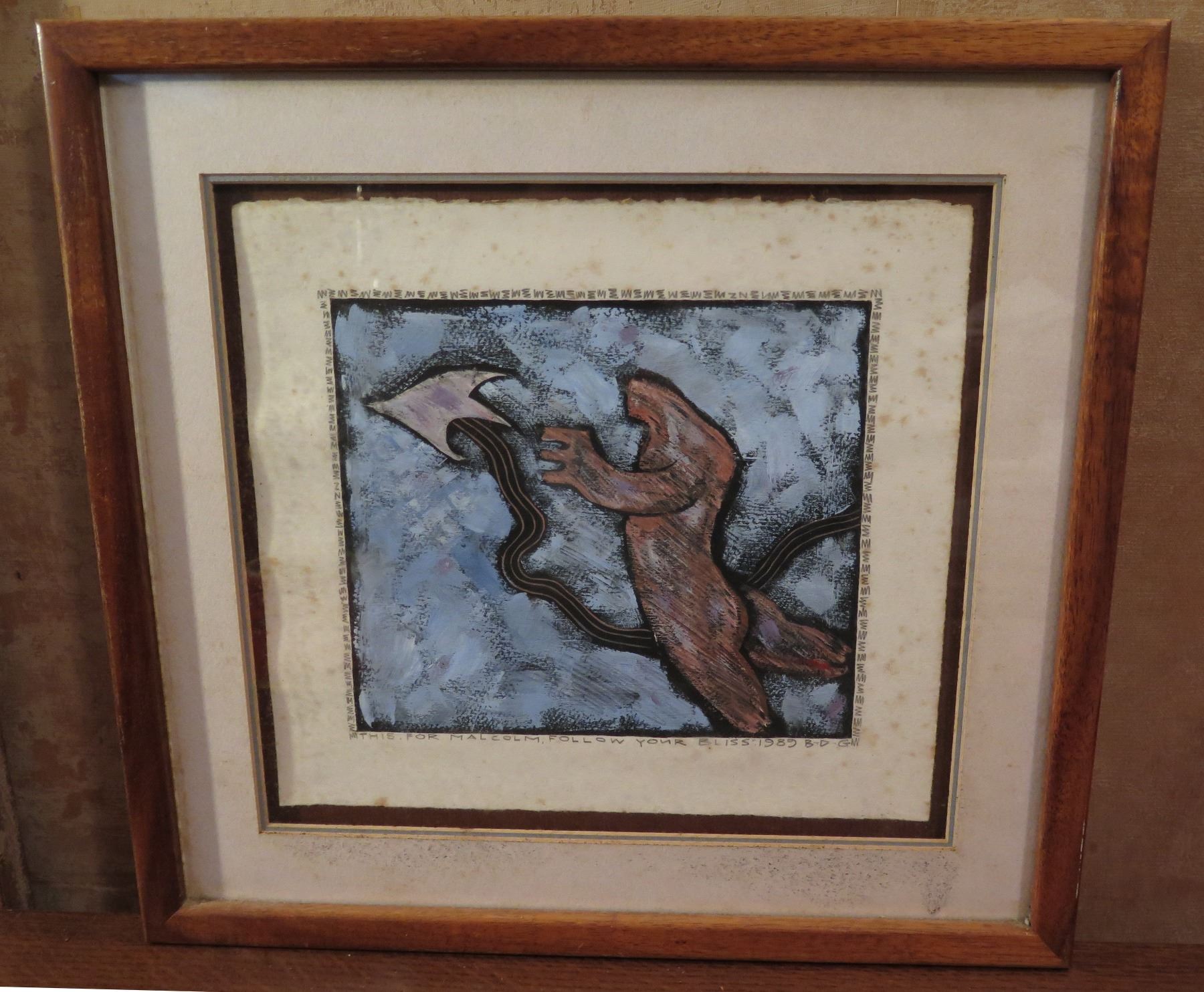 Framed Art, "Follow Your Bliss" Signed B D G 1989 17" x 16"