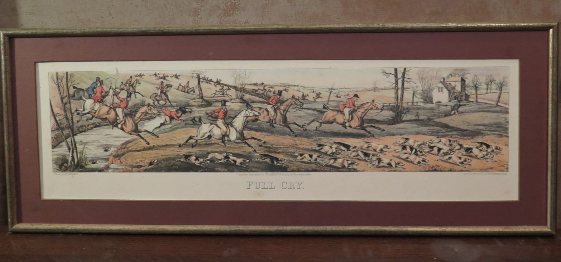 Framed Art, "Full Cry" Print, Aqua Tint Etched by H Alken Published 1824 28.5" x 11"