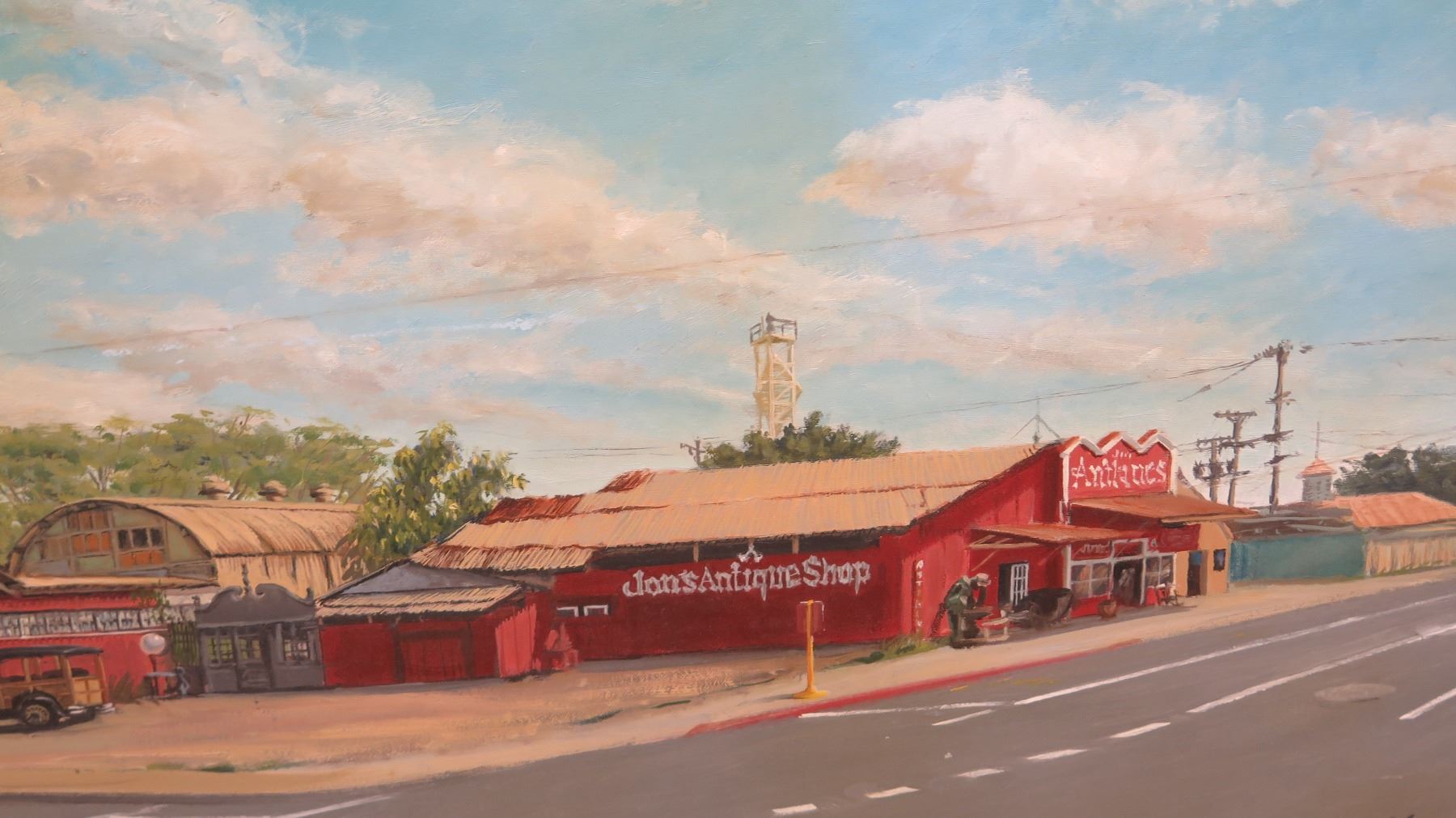 Framed Art: John's Antique Shop, Original, Signed, 43" X 25"
