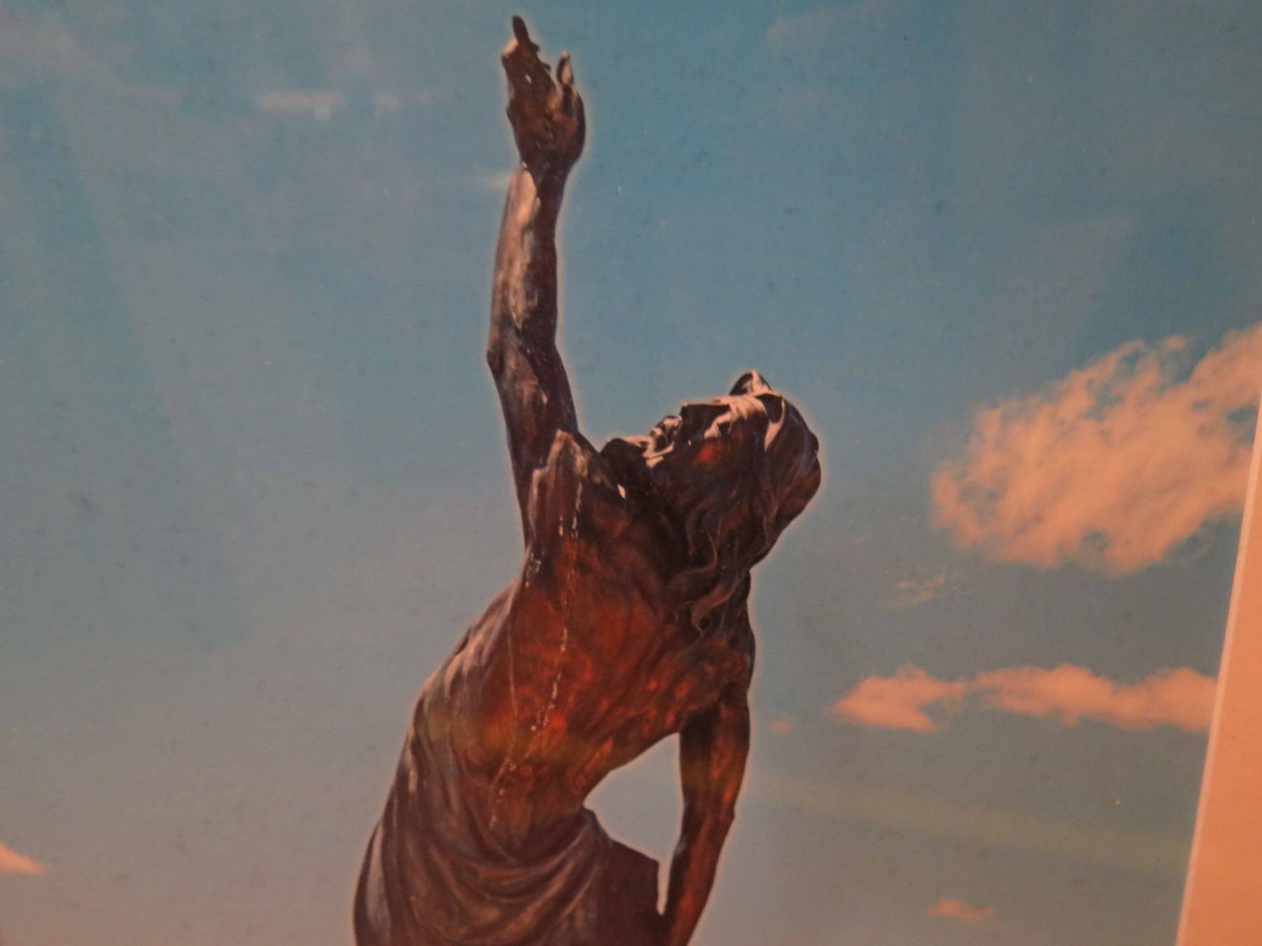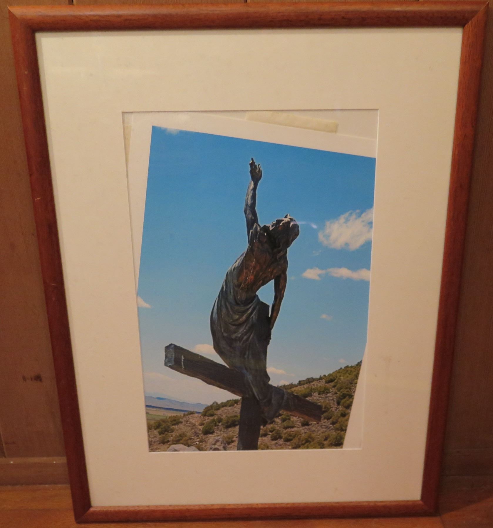 Framed Art, Photo Jesus on the Cross, 19.5" x 26" (Picture Falling Out of Frame)