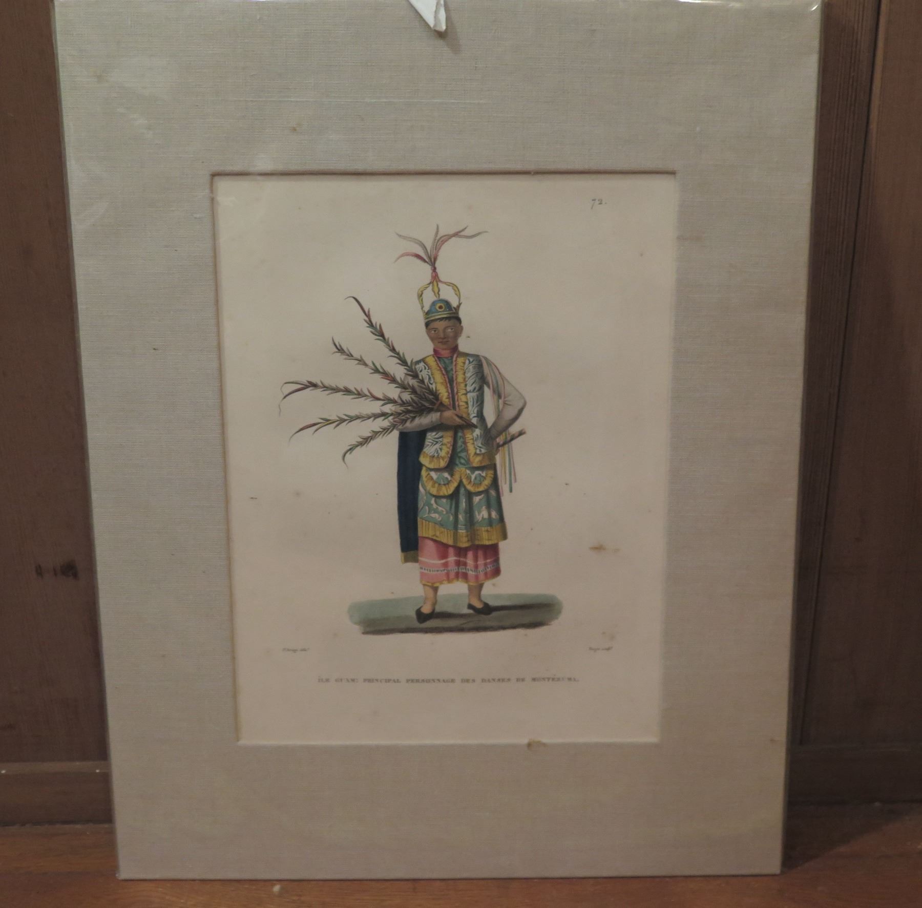 Framed Art, Print Ile Guam: Principal Personnage Des Danses De Montezuma 1820's 16" x 19.75"