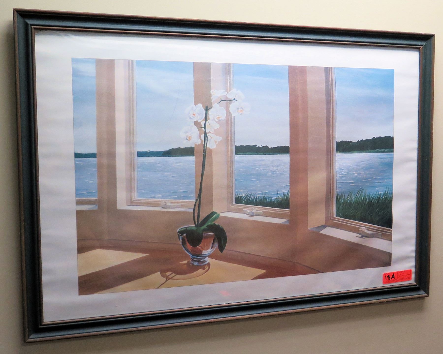 Framed Art Print (White Orchids) 39" x 27". Buyer will be responsible for disassembling and removing all purchased items in this auction. Buyer must bring own tools, carts, etc. Loadout Thursday, May 9 to Saturday May 11. Detailed directions to building’s loading zone and designated load-out areas will be provided.