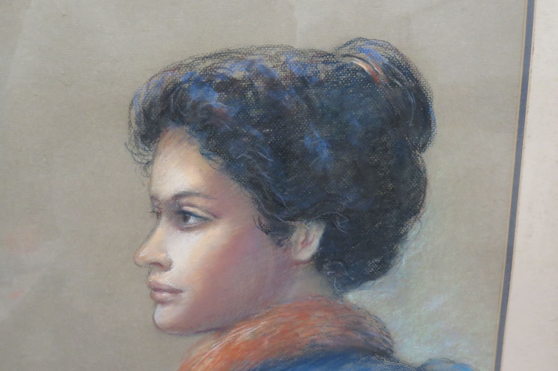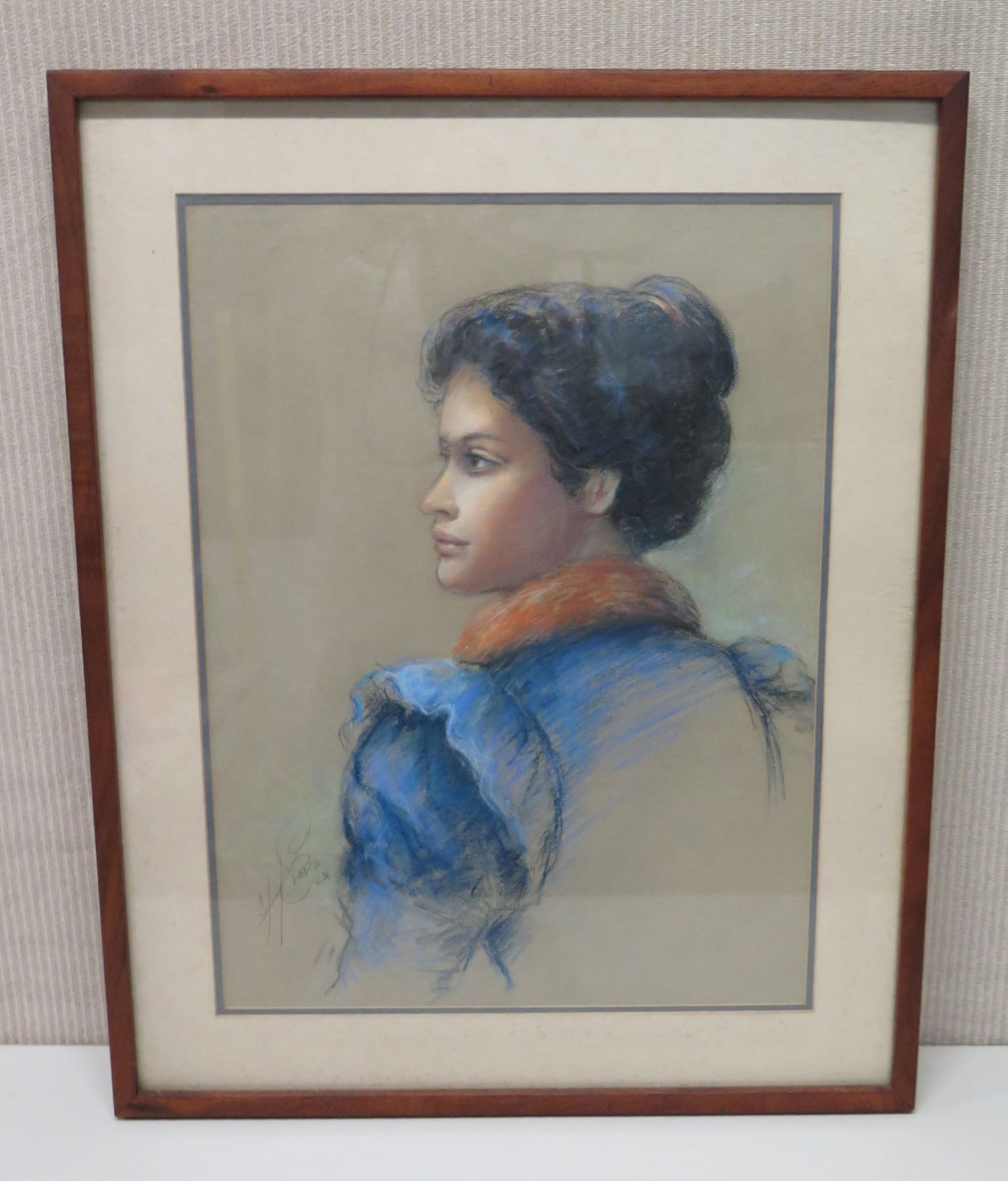Framed Art - Sketch of Hawaiian Girl (Princess Kaiulani?), Signed by Artist 25 x 31.5