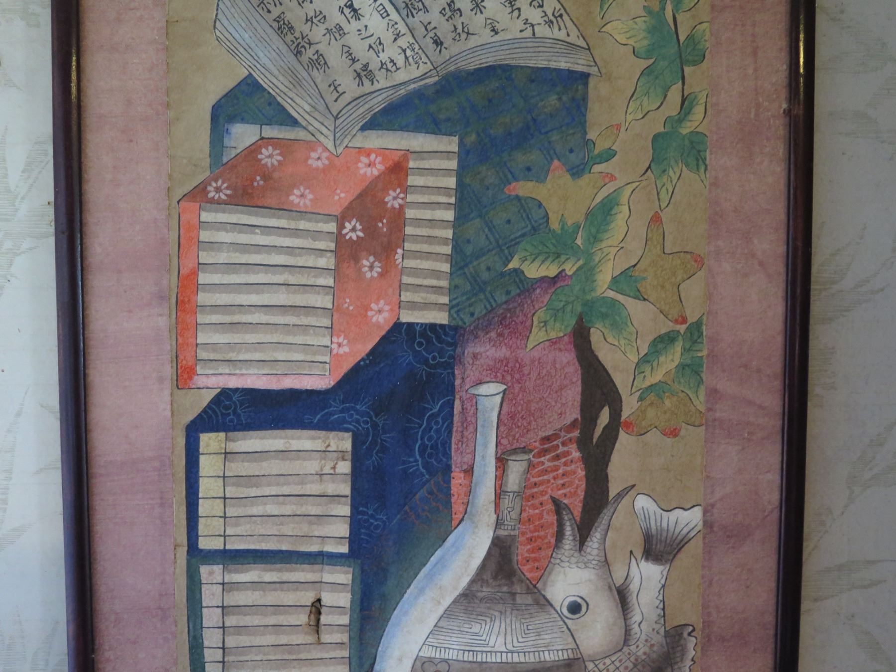 Framed Art, Watercolor Asian Design 19"x 48.5"