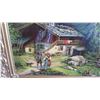 Framed Artwork: Cabin/Mountains/Lake Scene - 31.5 X 35, Some Damage