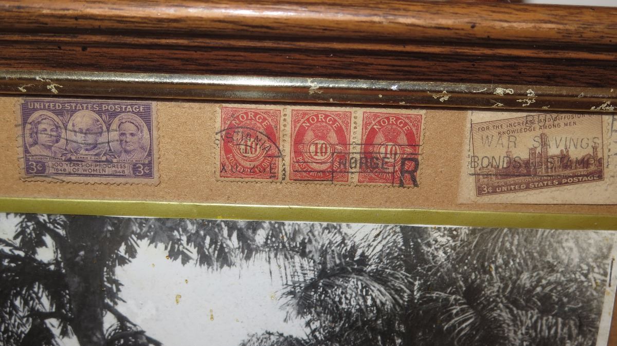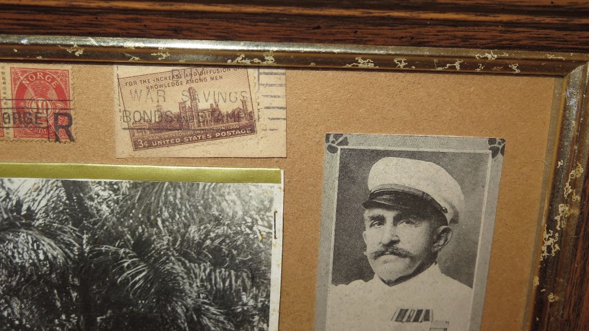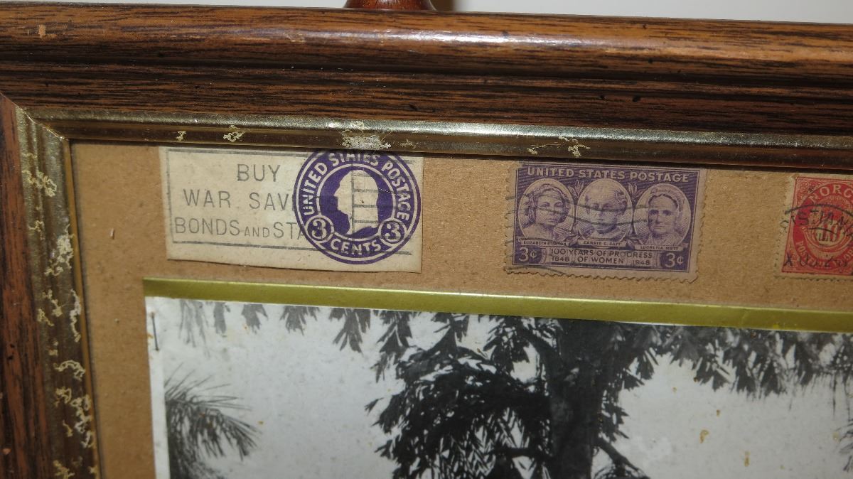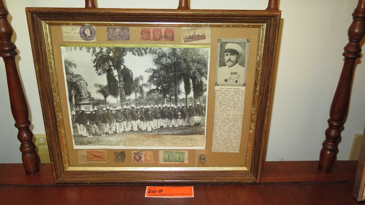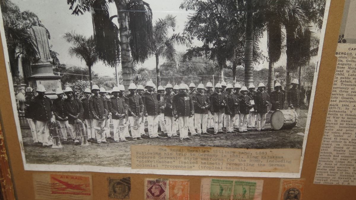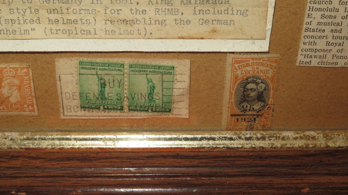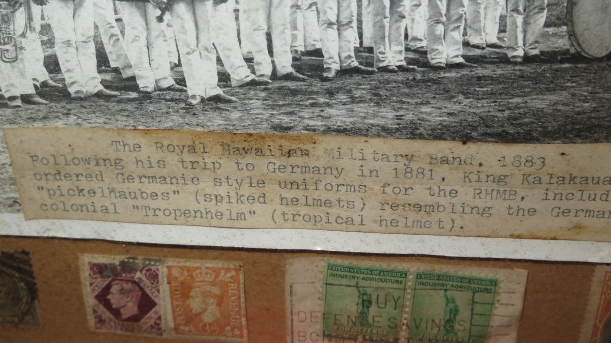 Framed B& W Royal Hawaiian Military Band 1883 & Old Stamps 16x13