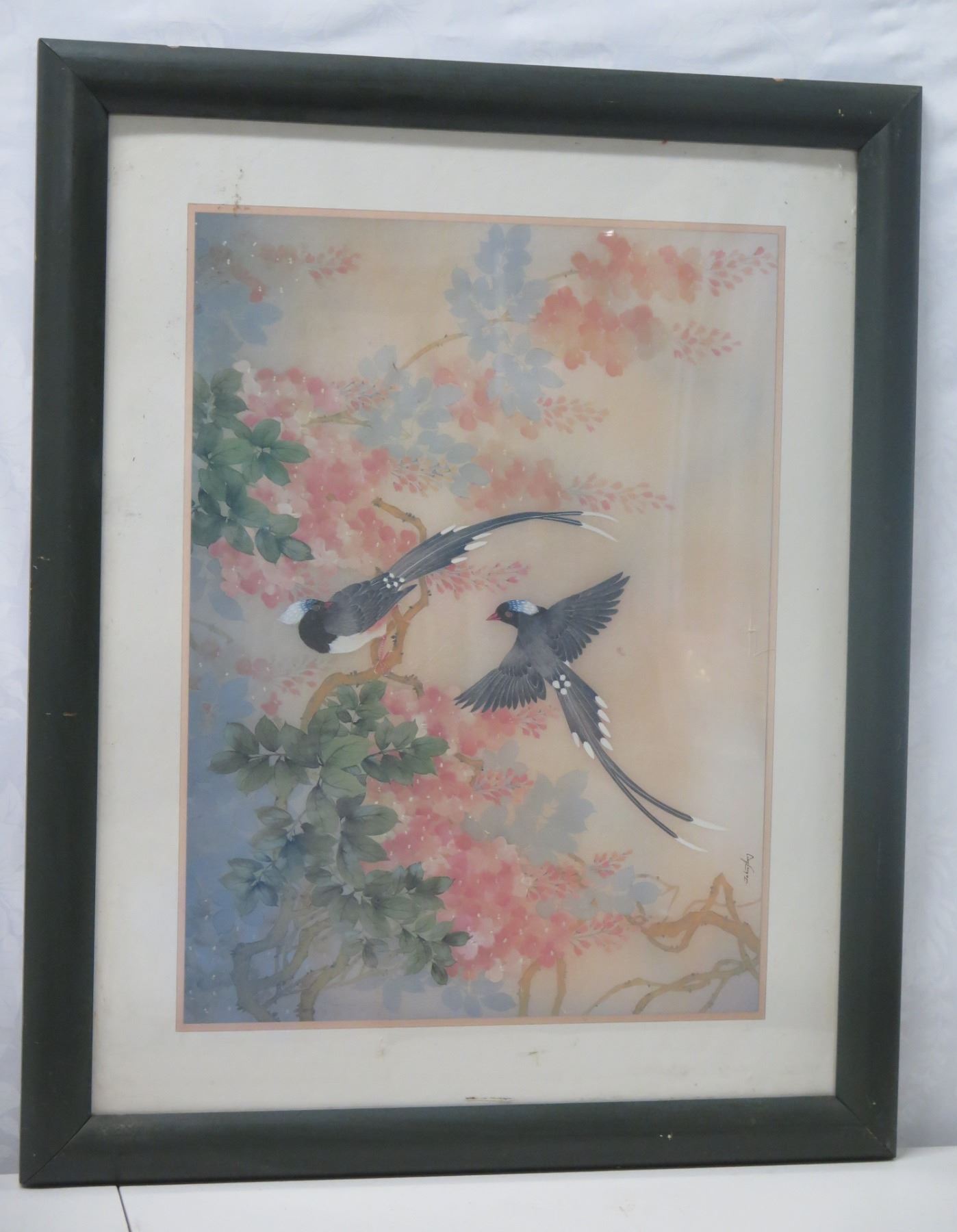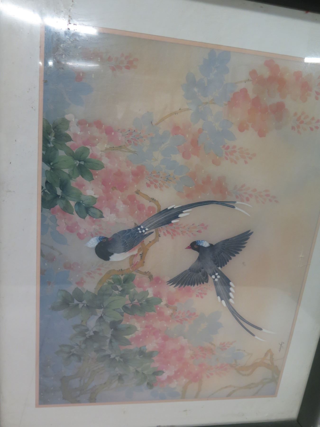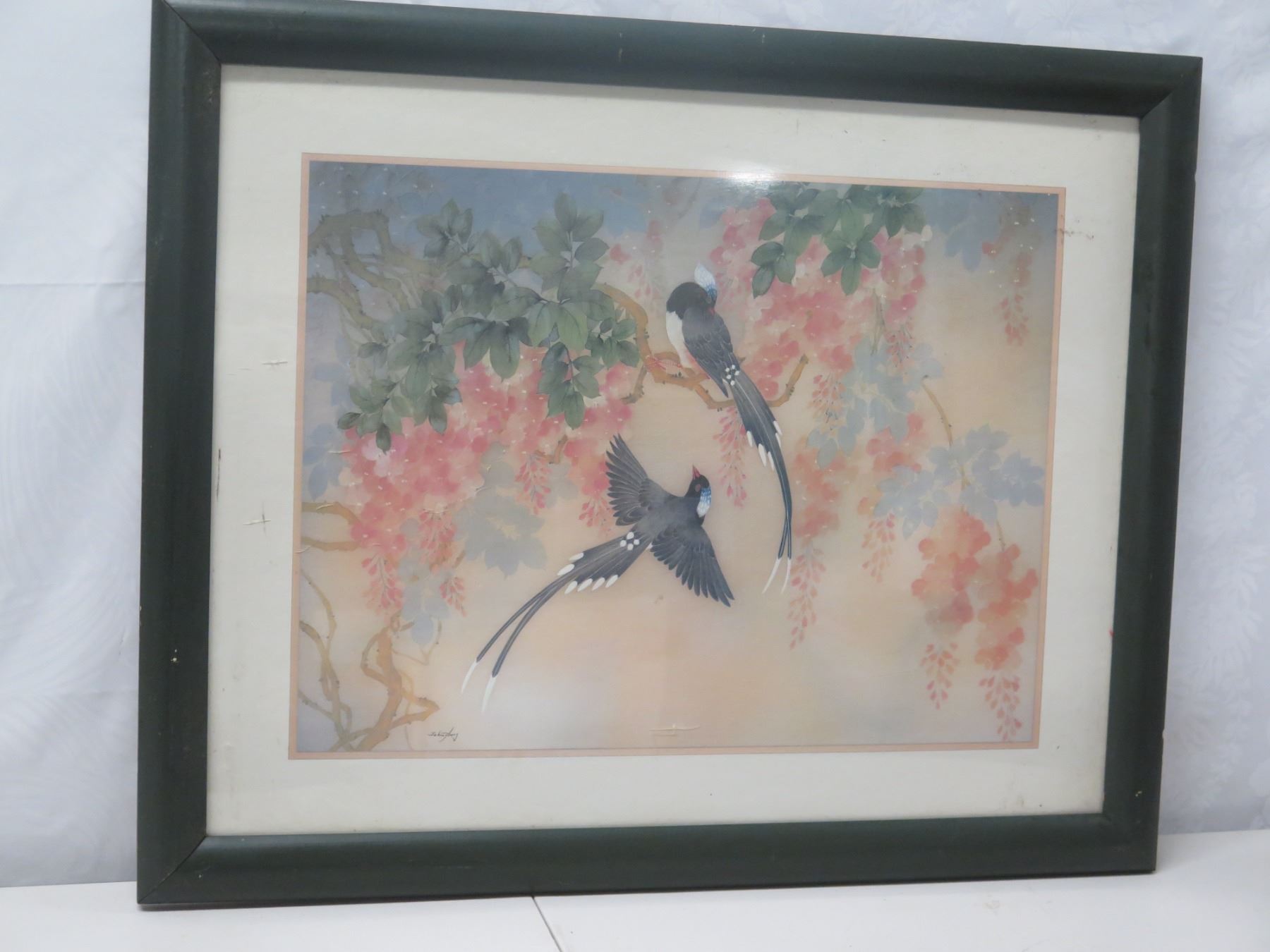 Framed Bird Motif Artwork, Signed Johnny Lung(?), Wood Framed