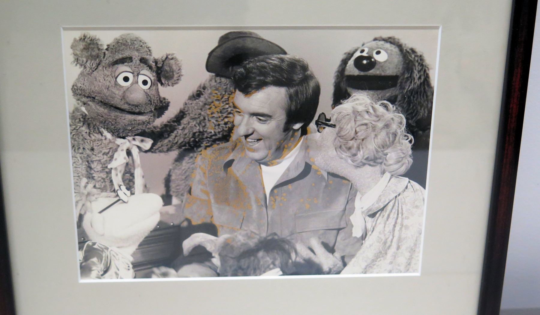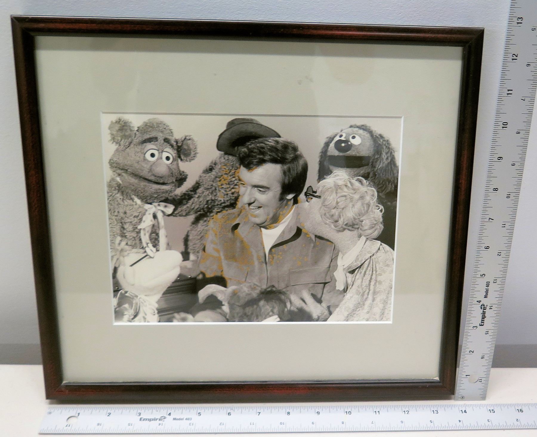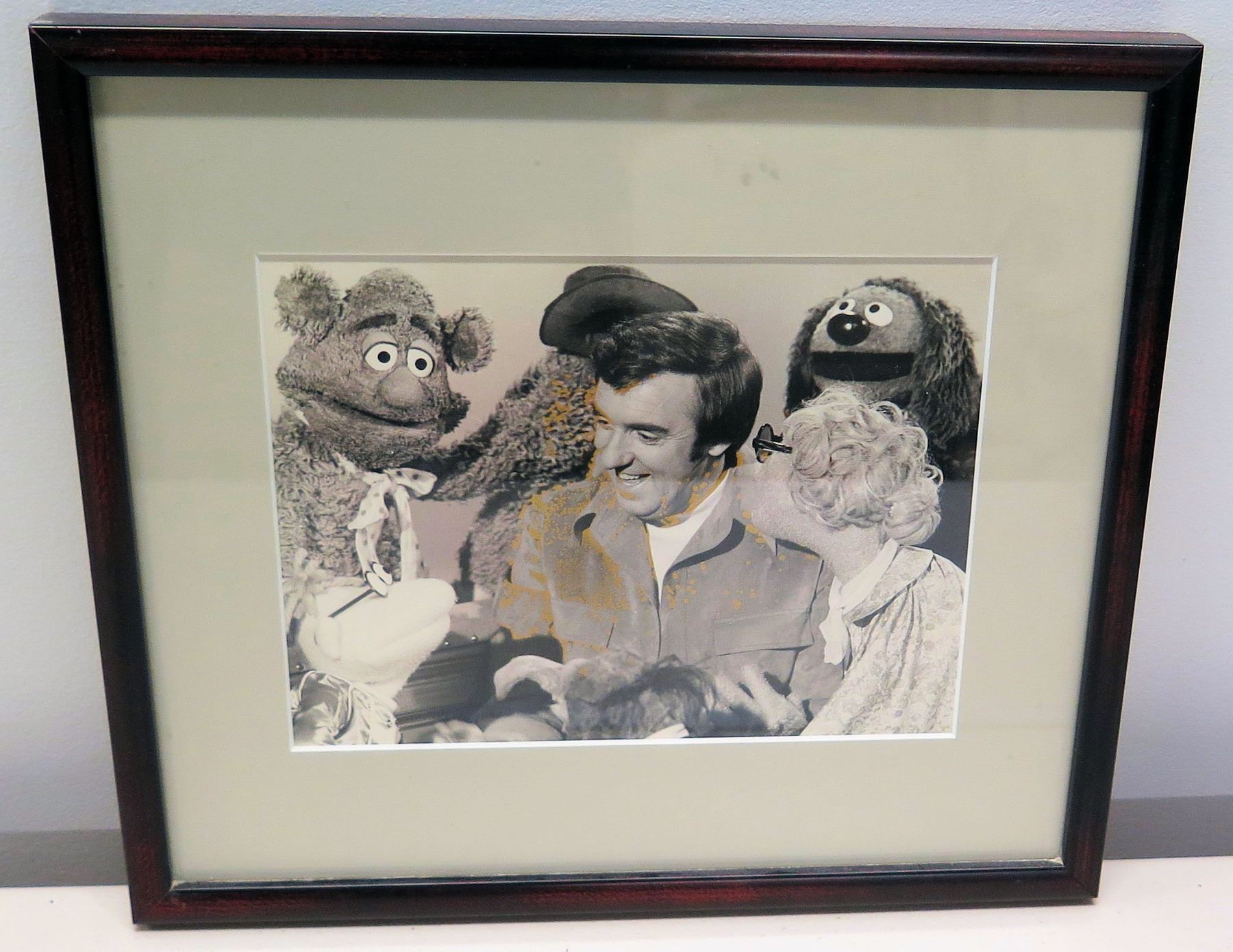 Framed Black & White Photograph of Jim Nabors & Muppet Show Characters