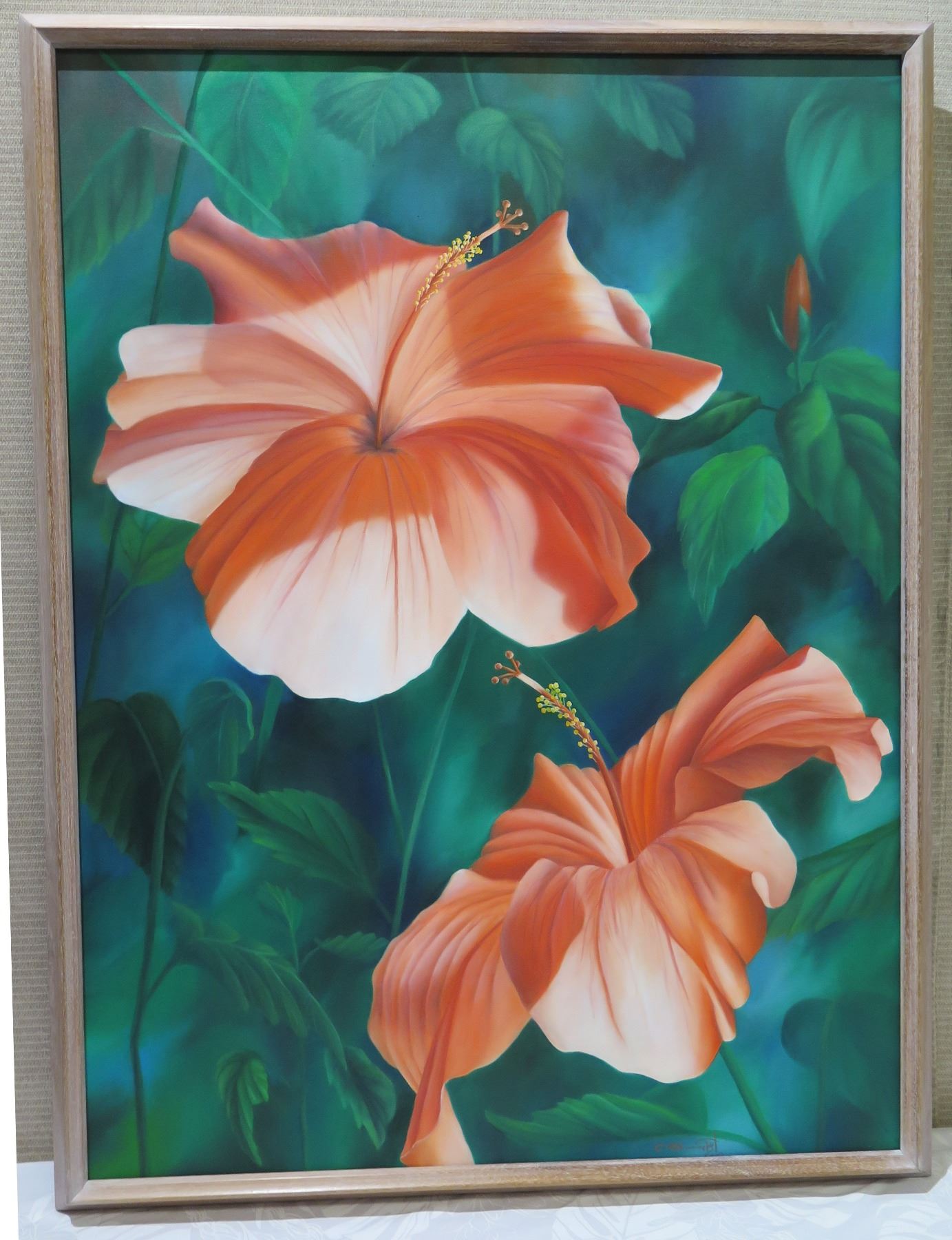 Framed Canvas, Large Hibiscus, Signed by Dawn Shekut, 42" x 32"