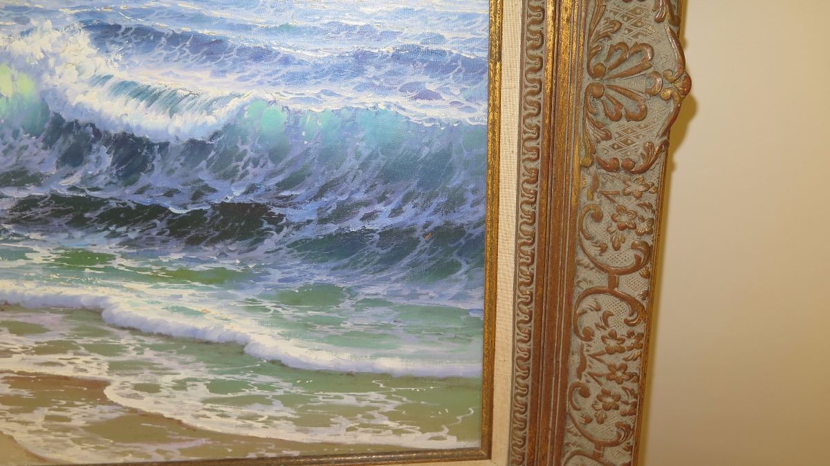Framed Canvas Painting: Crashing Waves - by Roy Robinsot? 44.5 X 33