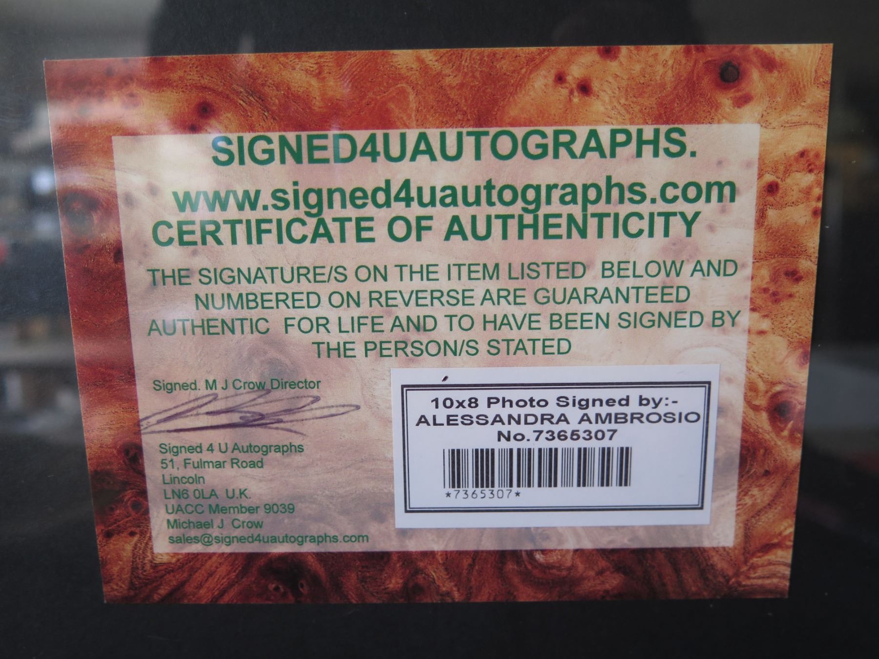 Framed Celebrity Photo of Allesandra Ambrosio w/ Authentic Signing & COA