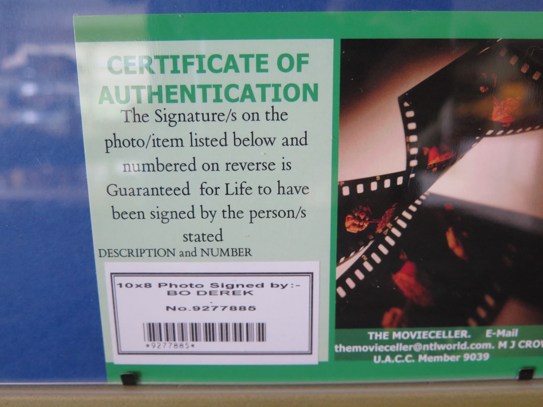 Framed Celebrity Photo of Bo Derek w/ 4 Inset Pics & Authentic Signing & COA