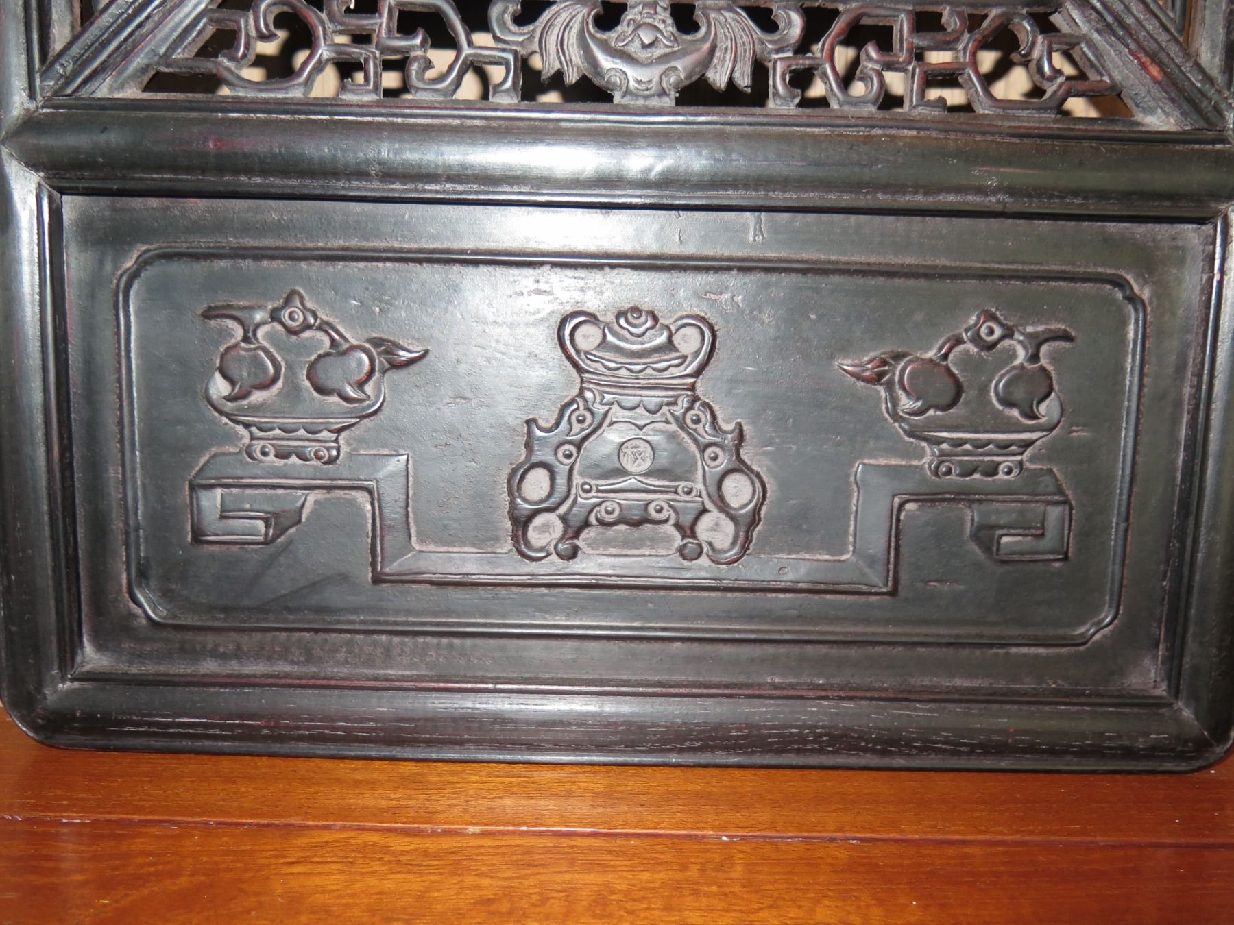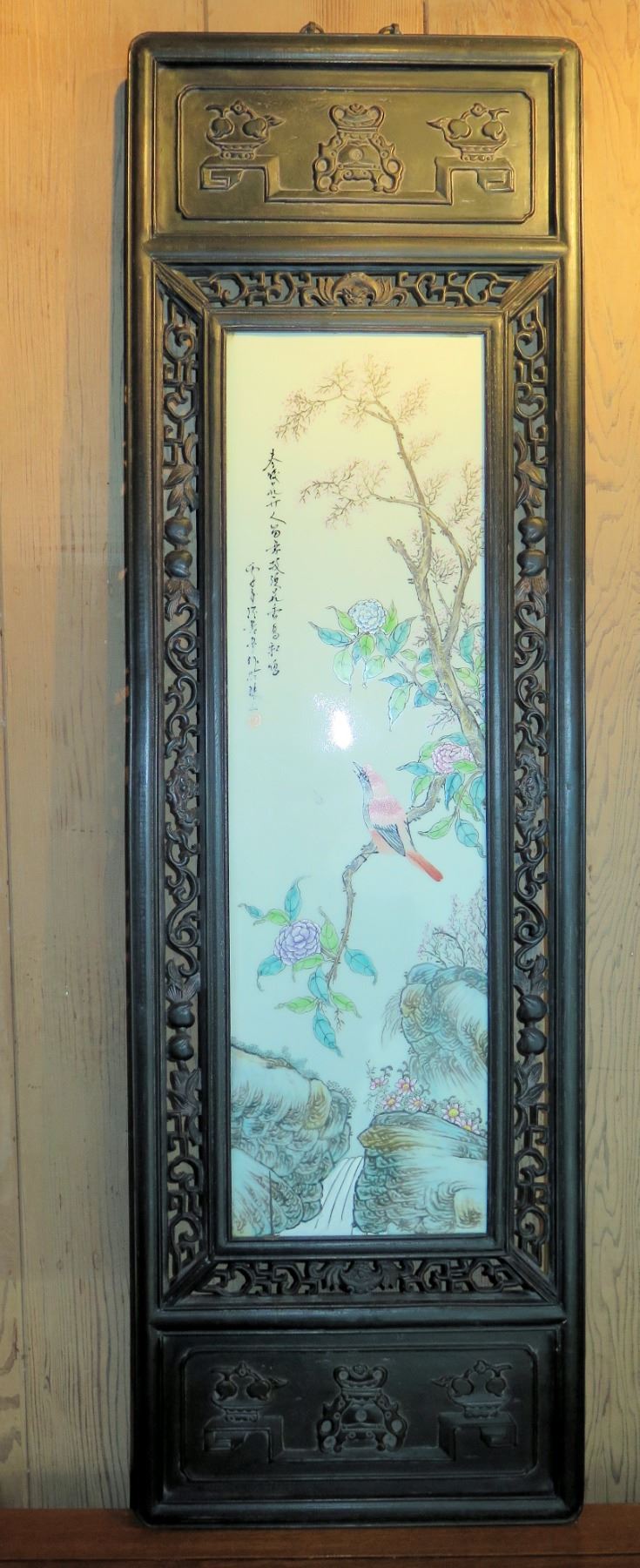 Framed Chinese Art w/ Carved Wooden Frame 14"x 47"