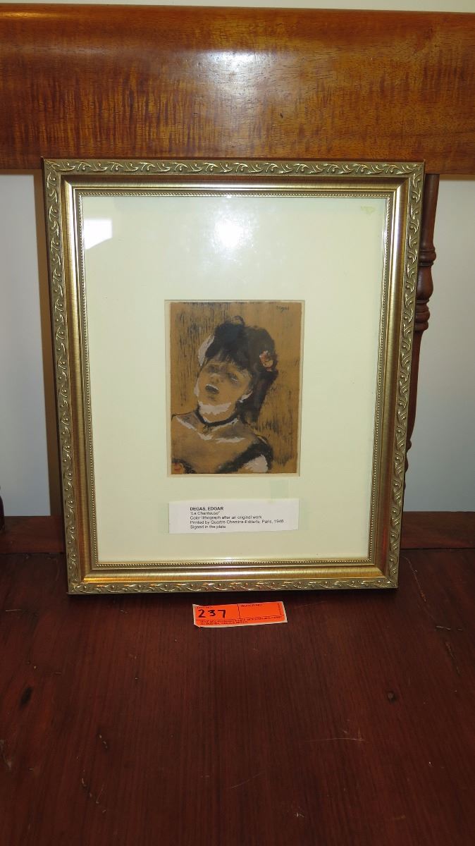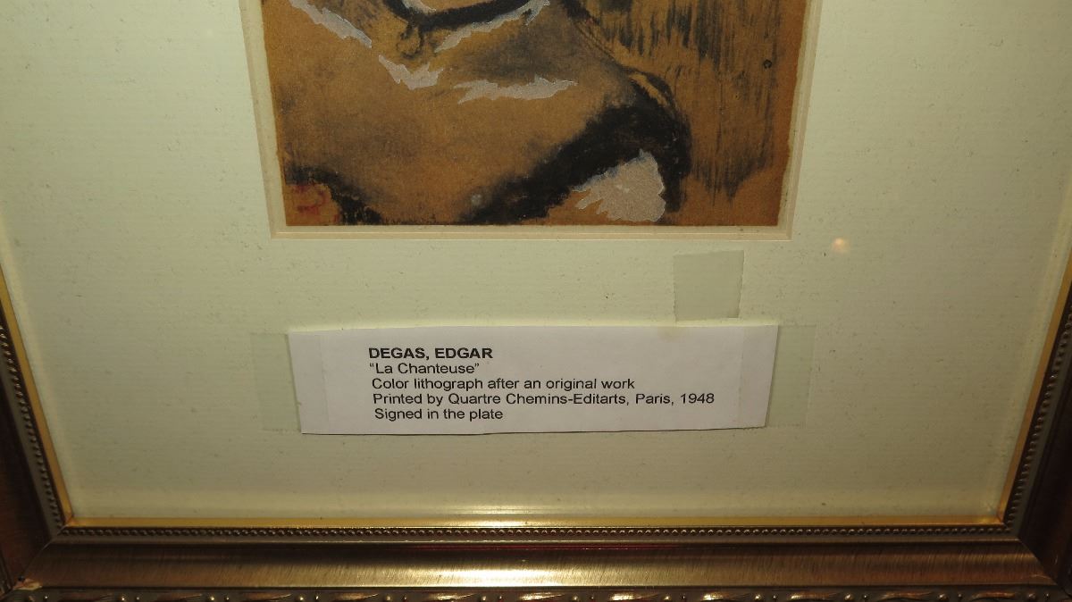Framed Collotype of Original Work: Degas "La Chanteuse" - Printed in Paris 1948 (13X16)