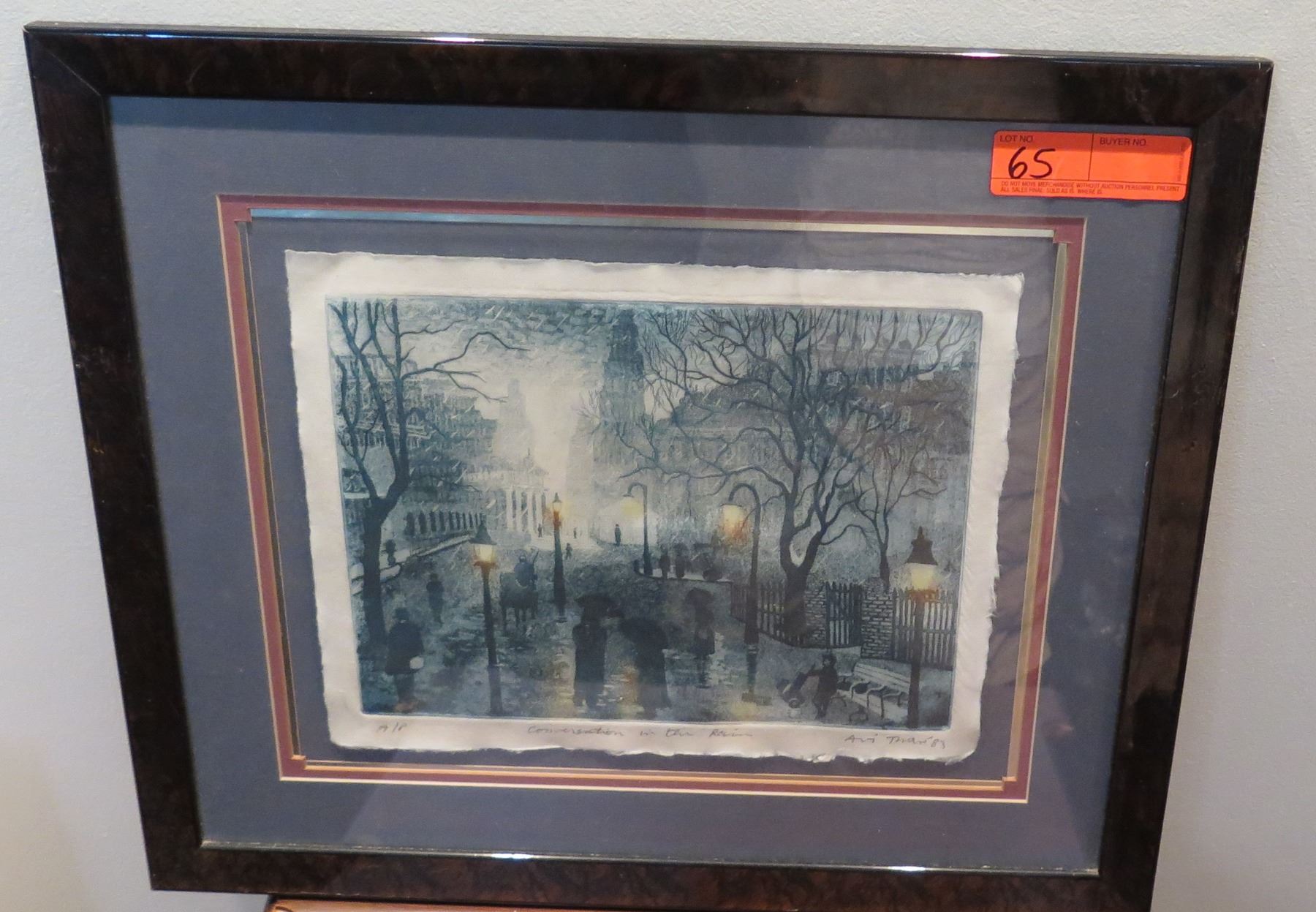 Framed "Conversation in the Rain", Avi Thaw, Artist's Proof w/Original Signature, 1983, 21"X18"