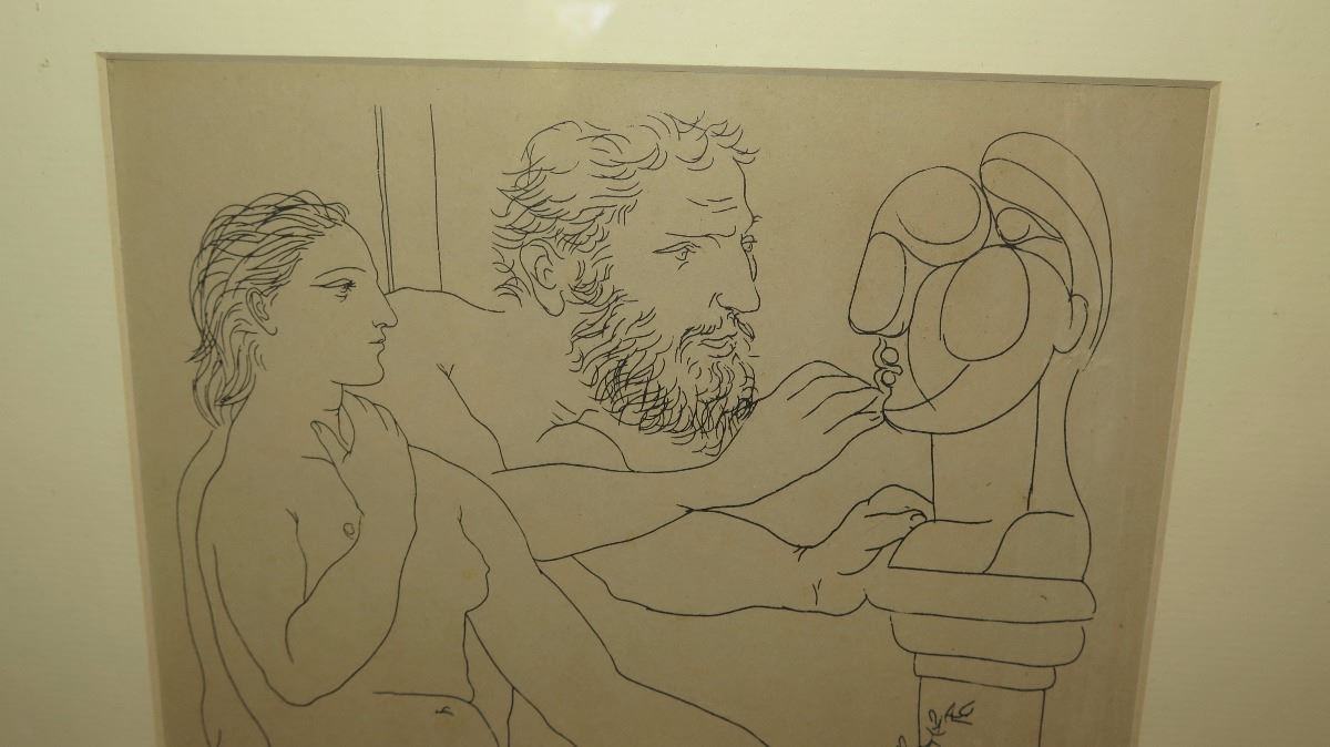 Framed Etching: Pablo Picasso "Sculpture Avec Coupe et Modele Accroupi" - Block #152 (17.5X22)