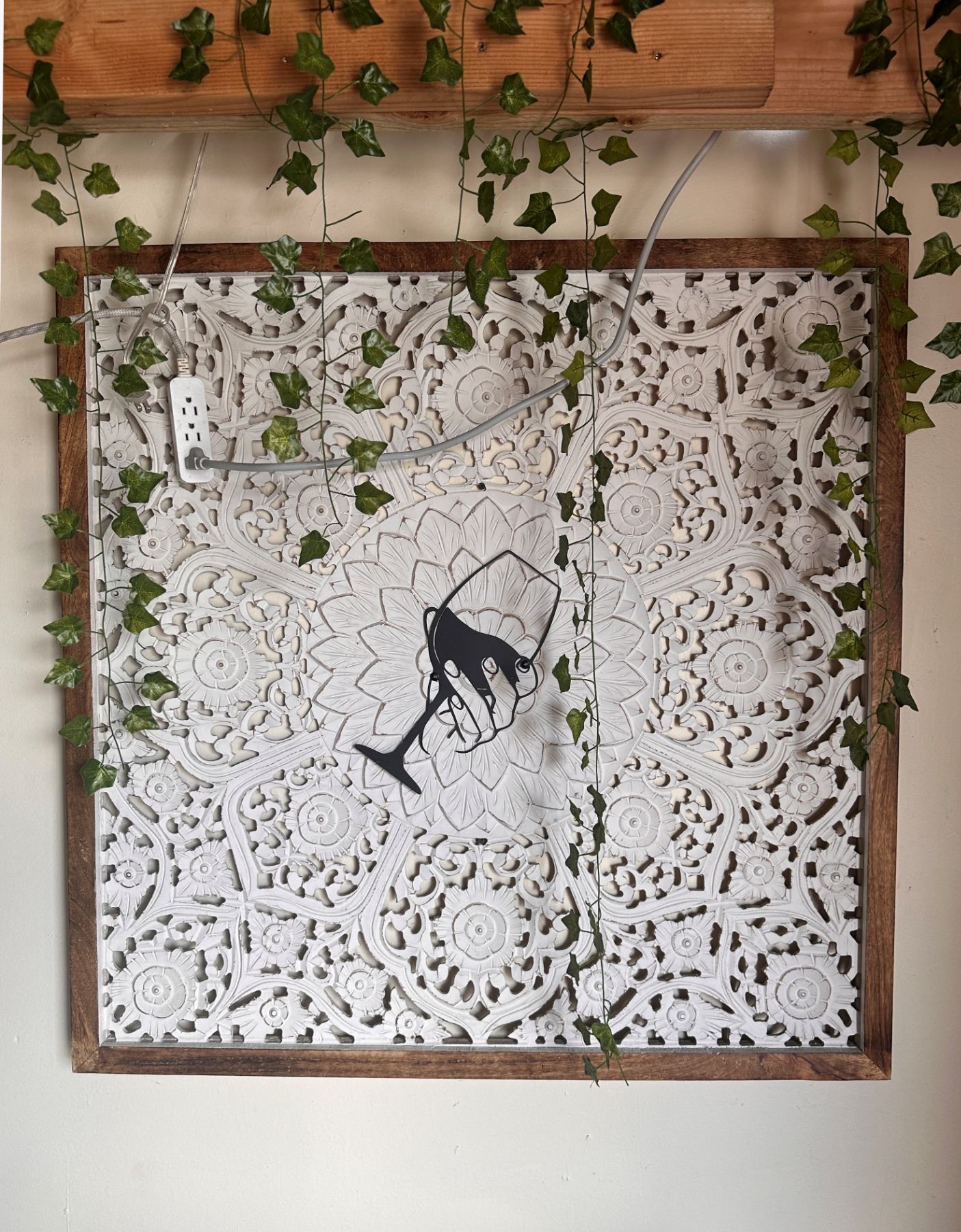 Framed Floral Cut-Out Design Panel w/ Wine Glass Motif 38" x 38"