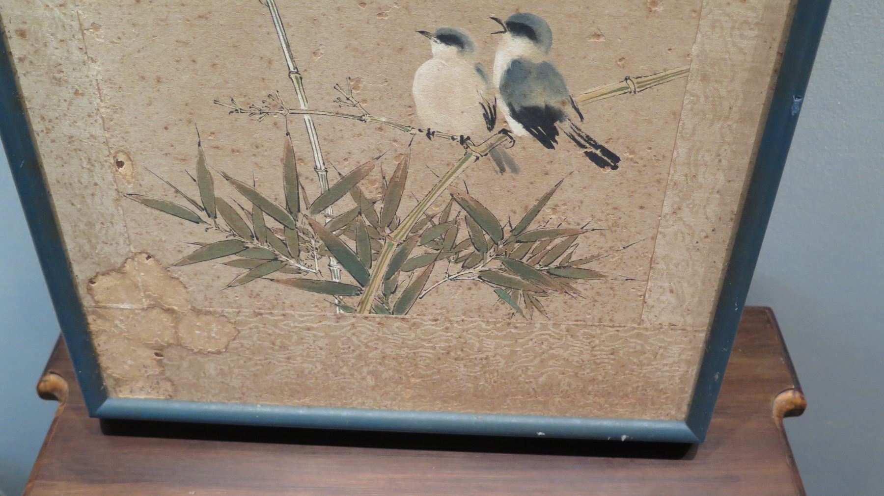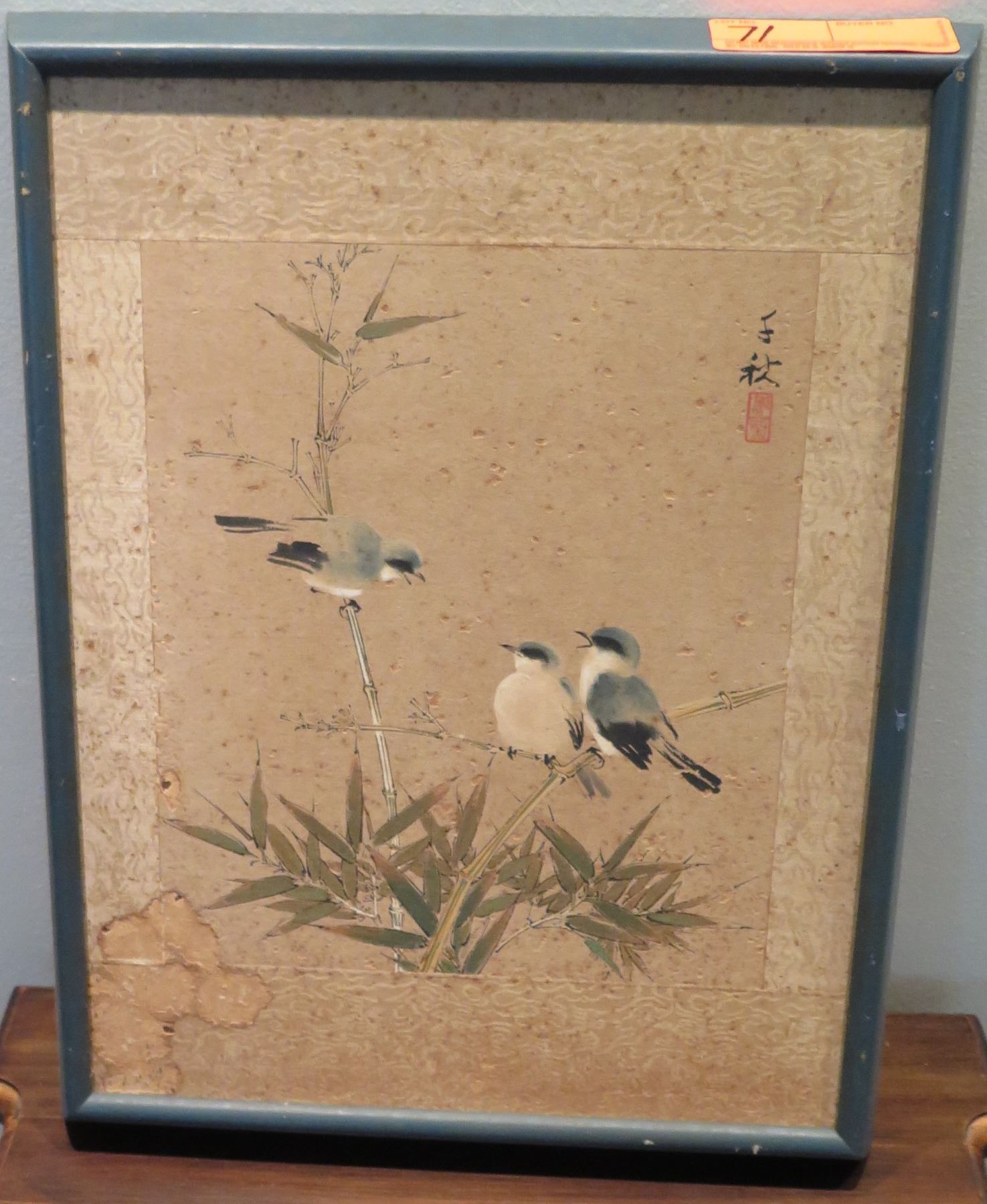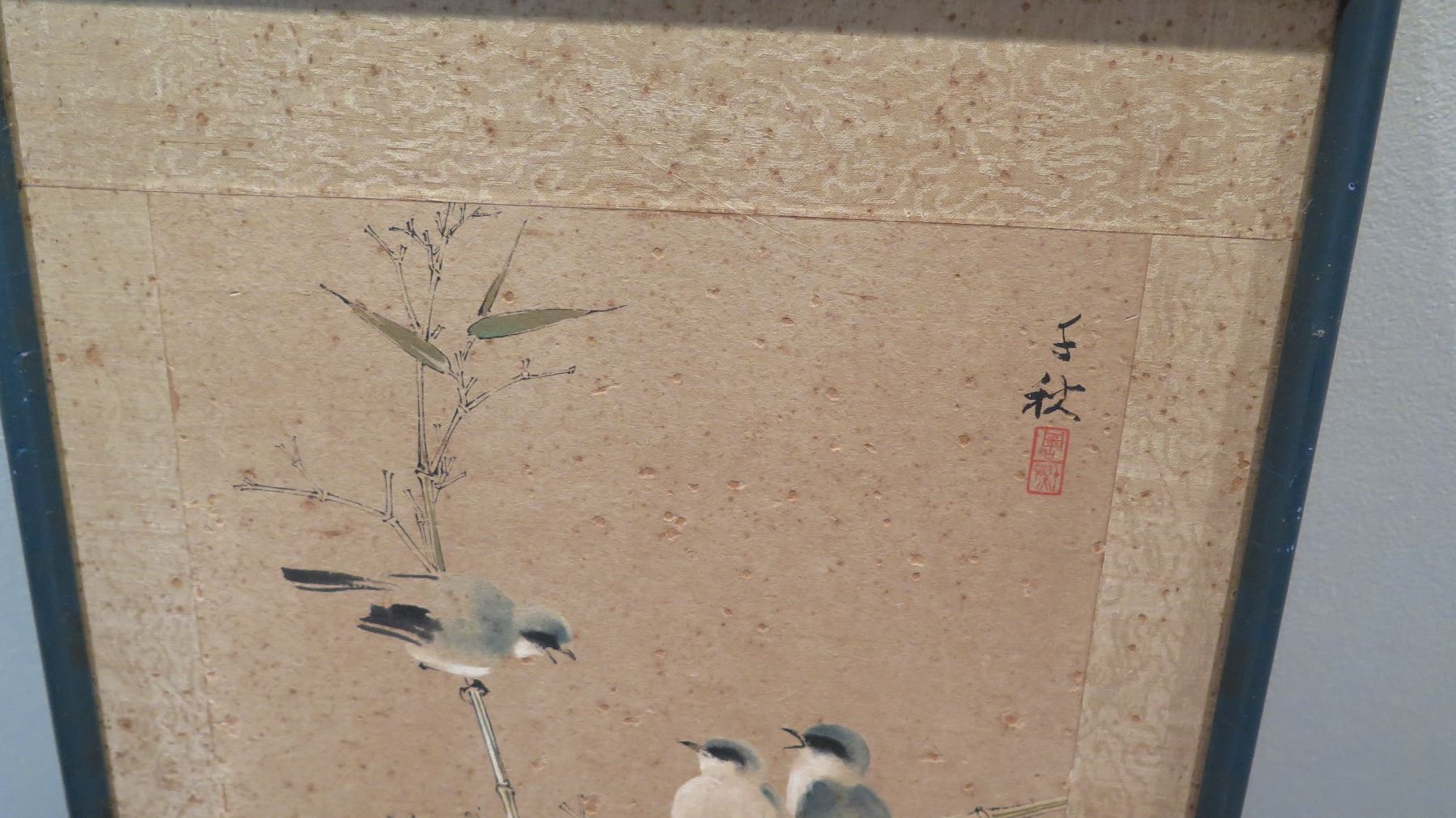 Framed Japanese Watercolor Art, Birds 14" x 18" (shows some age wear)