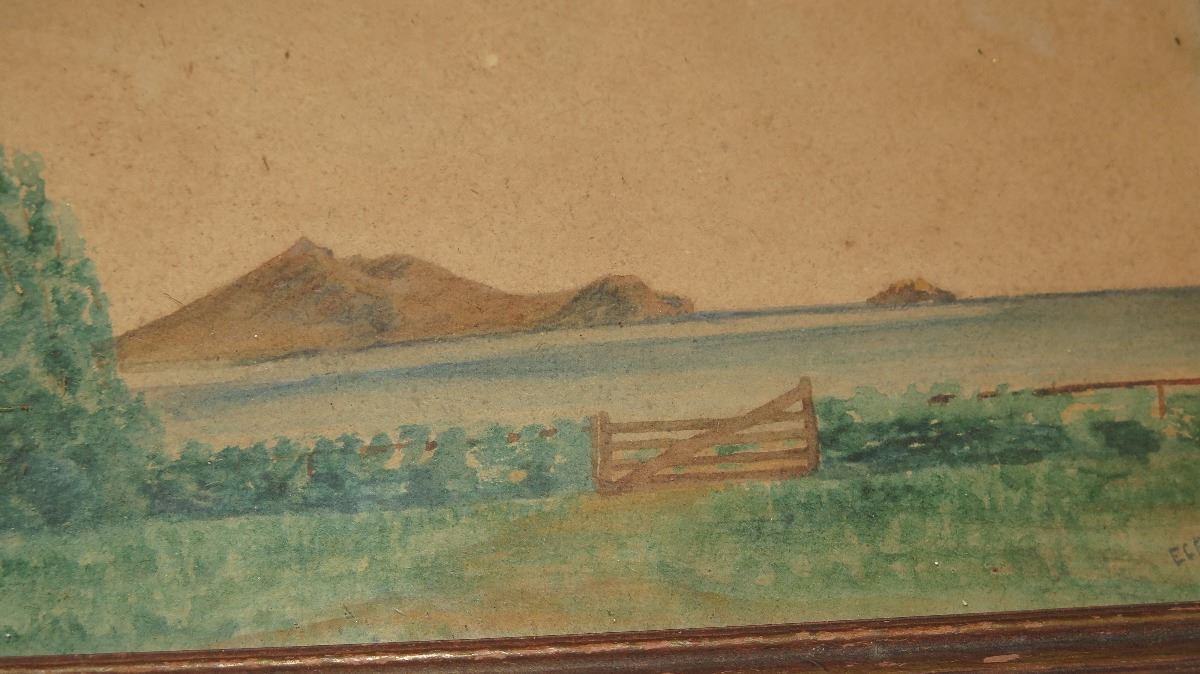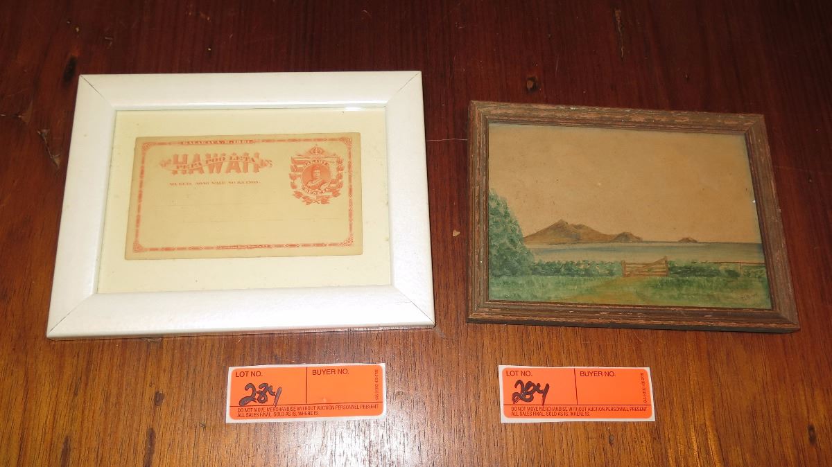 Framed Kalakaua 1881 Bank Note (N.Y), Framed Watercolor Rabbit Island? 8x6