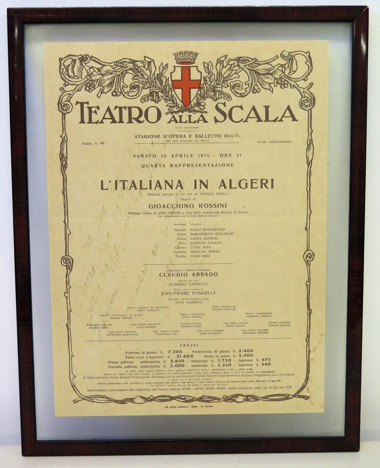 Framed La Scala (Italy Opera House), Autographed Playbill, 1975 (18" x 14")