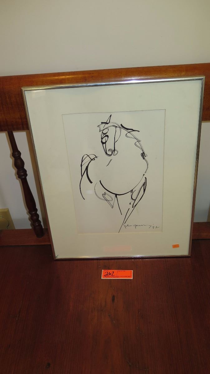 Framed Matted Drawing: Horse Sketch - by John Young 1992 (16x21)