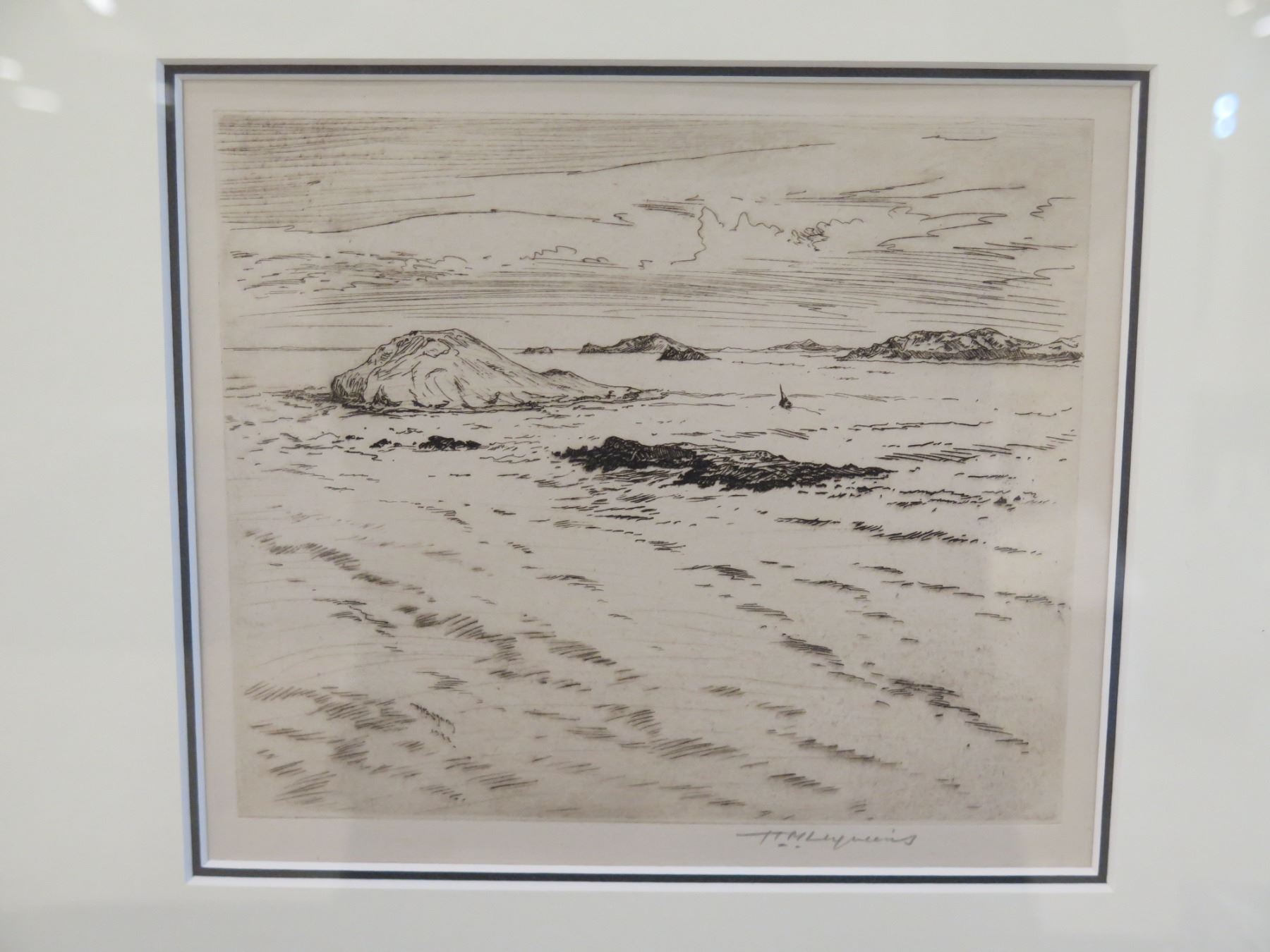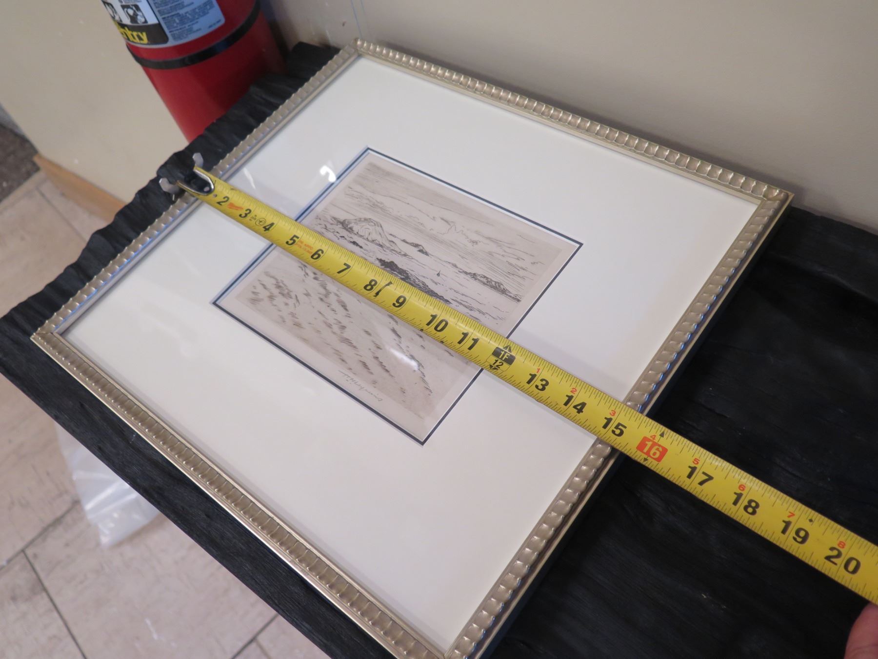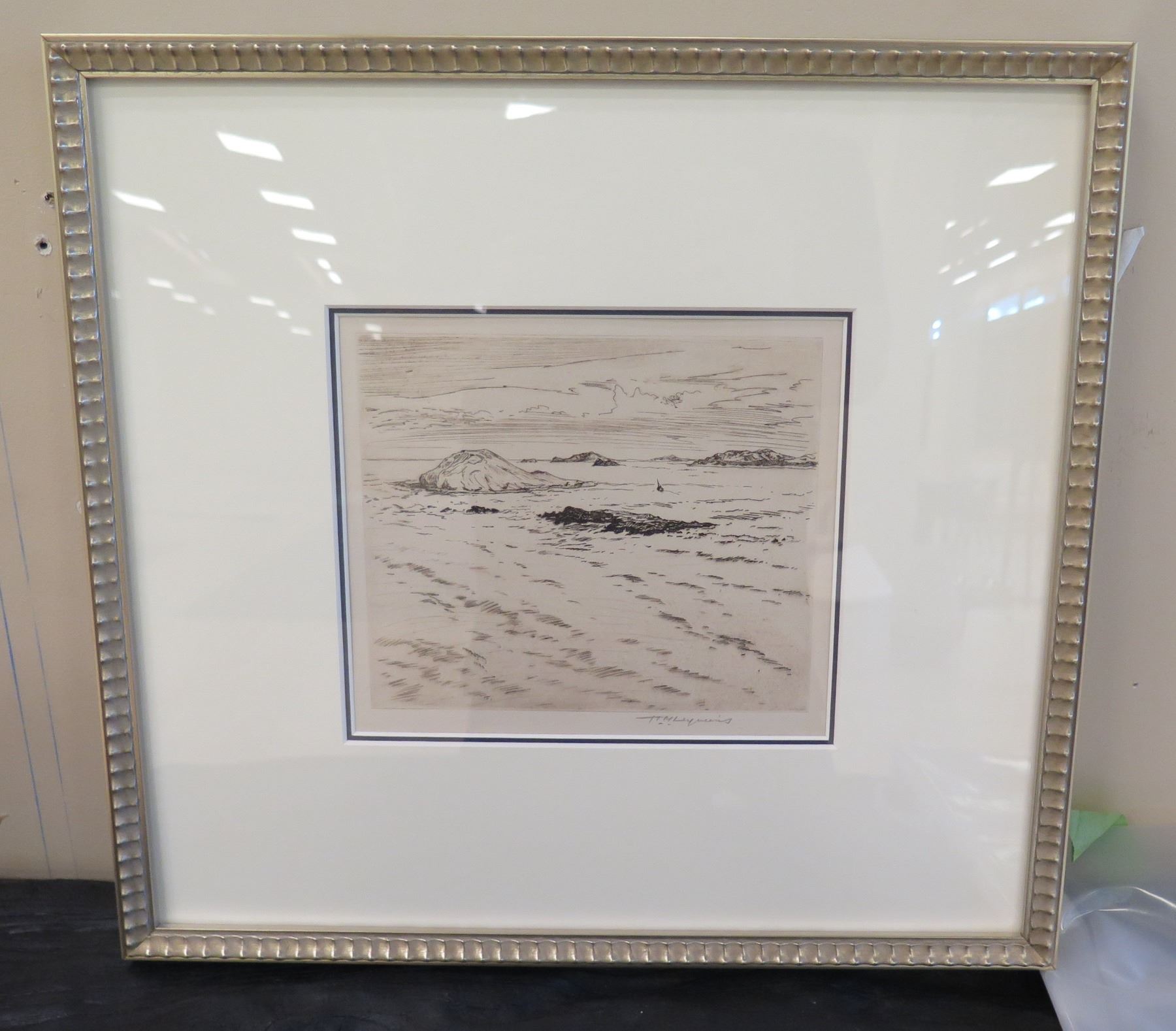 Framed & Matted Rabbit Island Ocean Artwork Signed by Artist H.M. Luquiens 14" x 15"
