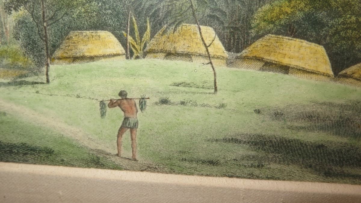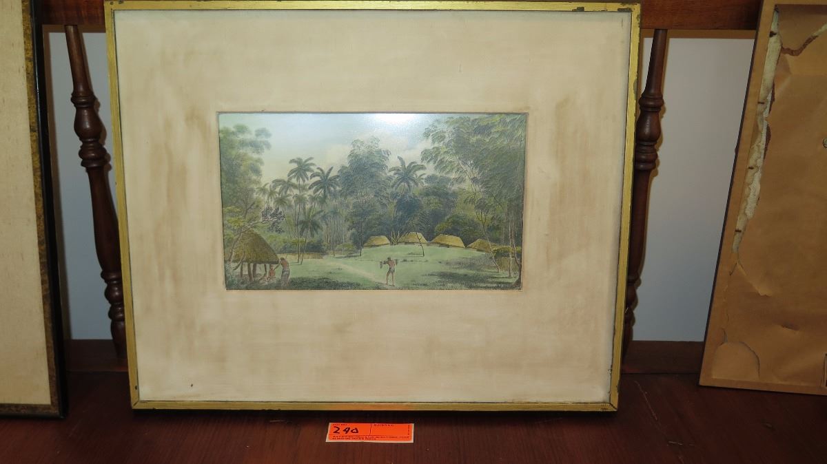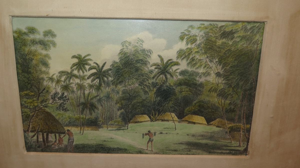 Framed Old Print - Depicting Hawaiian Village Scene 1958 (framed 1958) 21X17