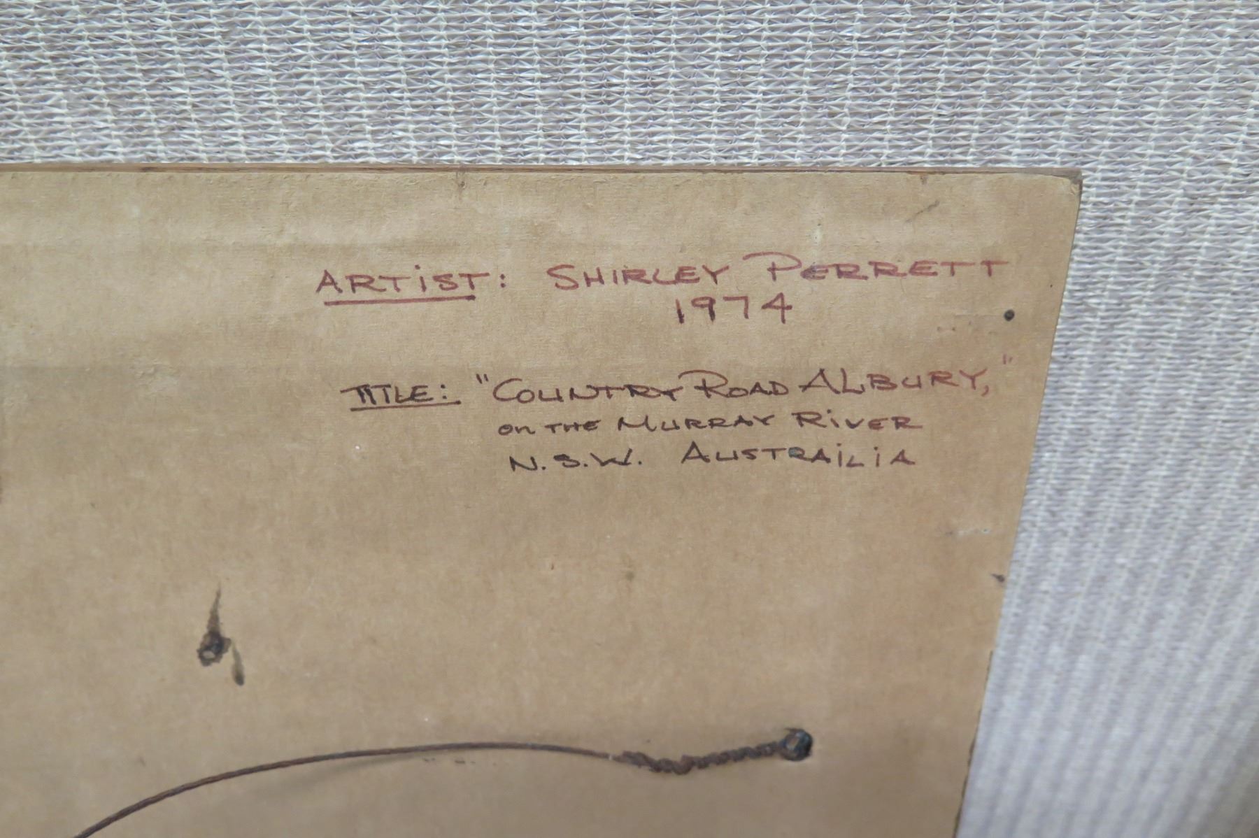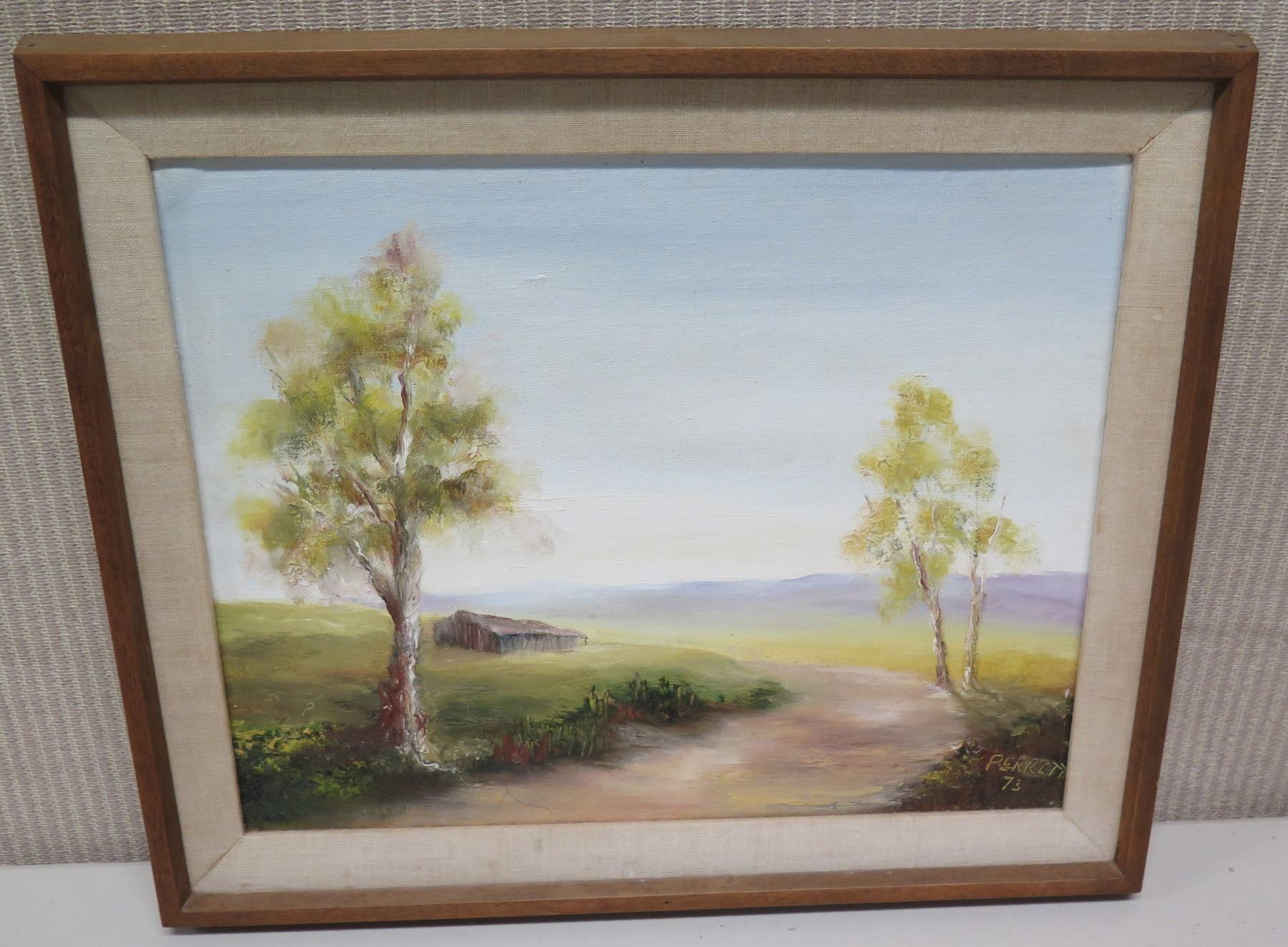 Framed Original Art on Canvas 17.5x15, Signed by Artist Perrett '74 "Country Road Albury, On the Murray River, N.S.W. Australia"