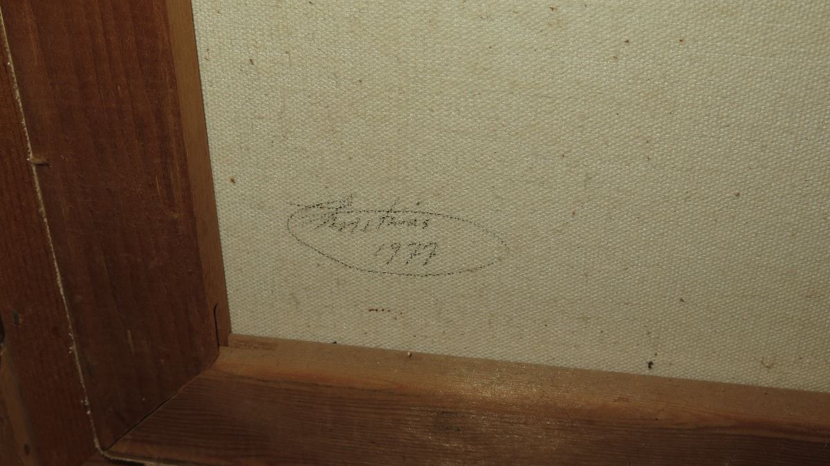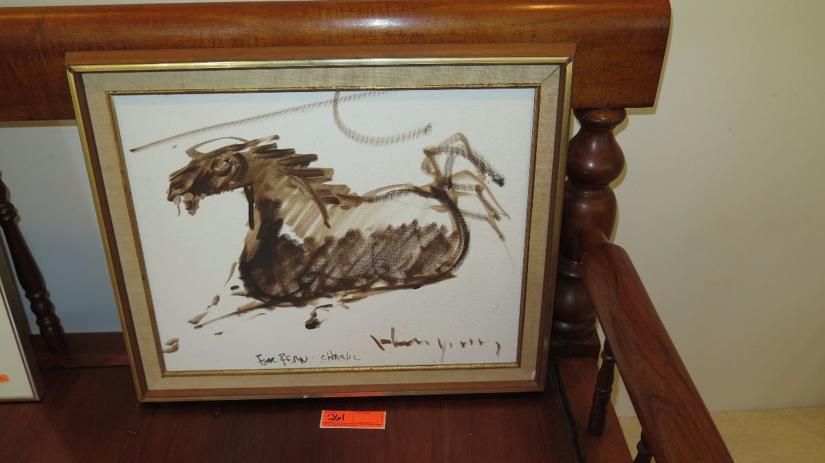 Framed Original Canvas: Horse Brushstrokes - by John Young 1977 (Inscription "For Rimu Charliz"). Approx. 23x19