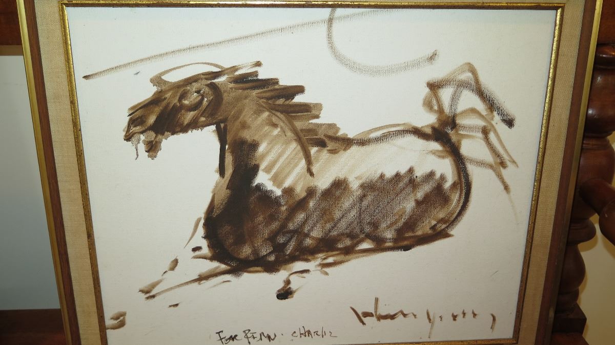 Framed Original Canvas: Horse Brushstrokes - by John Young 1977 (Inscription "For Rimu Charliz")