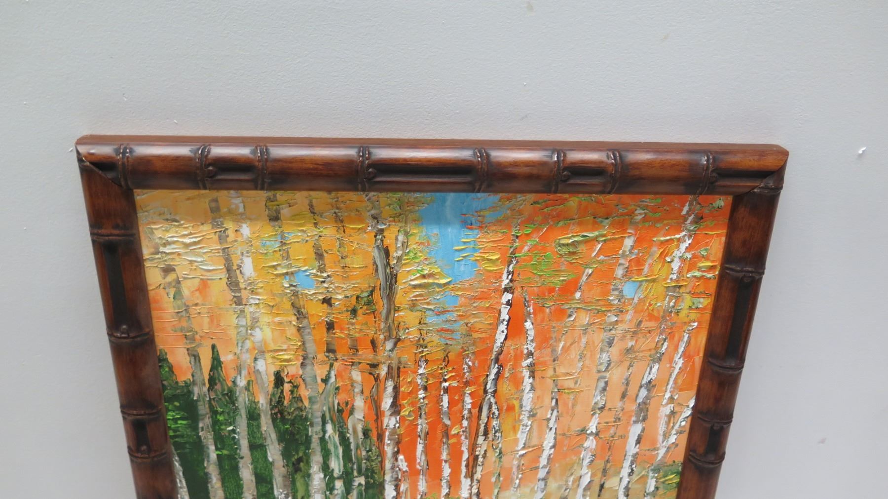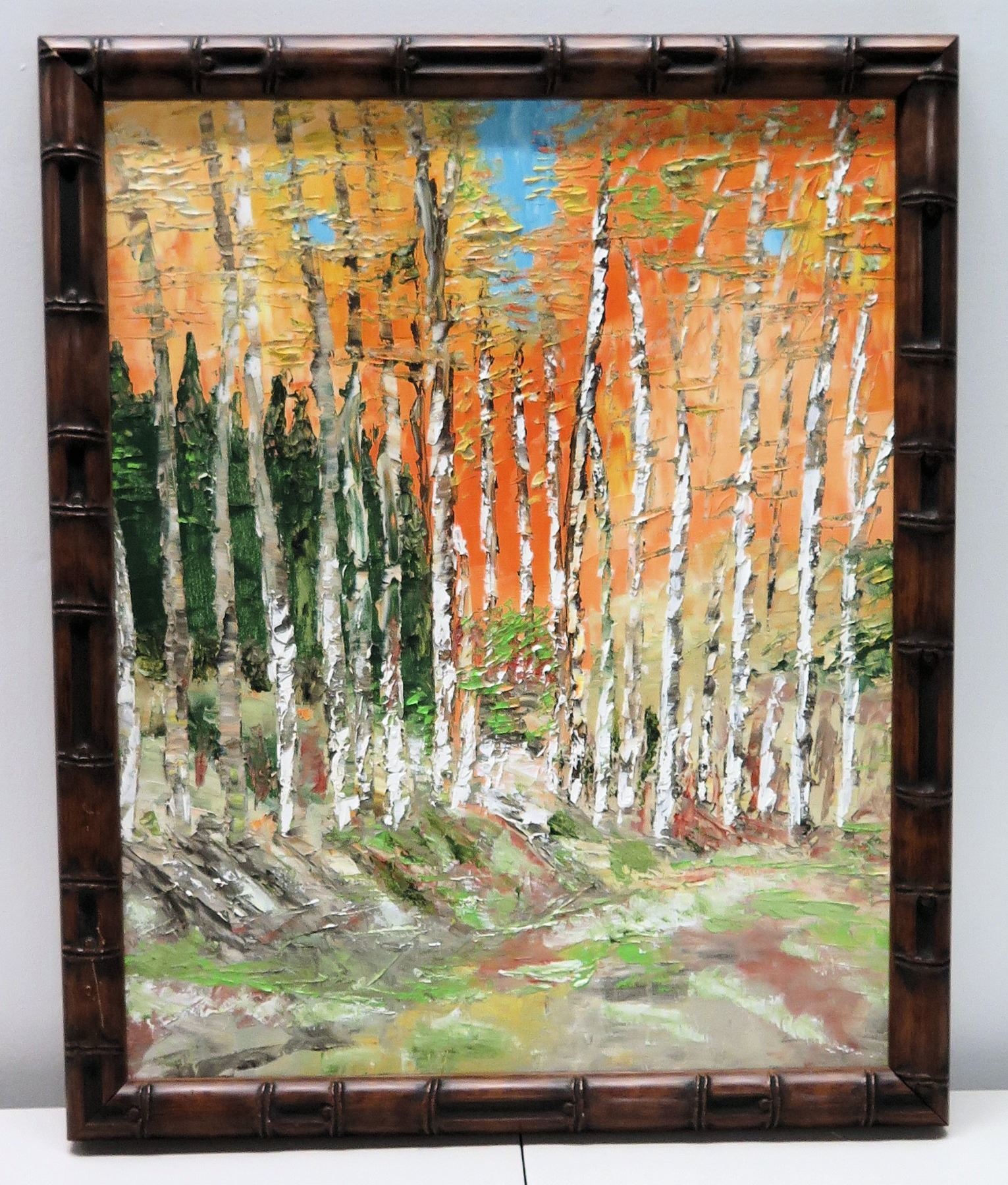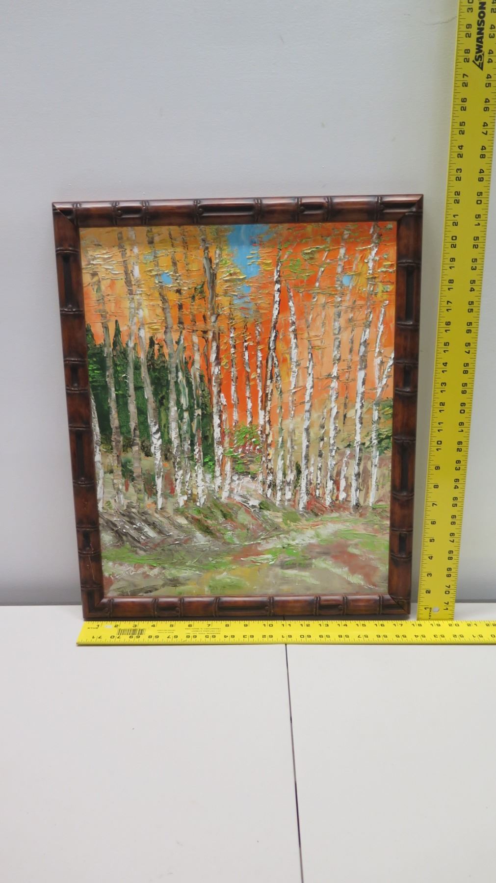 Framed Original Painting on Canvas - Birch Trees, Signed by Artist 18" x 33"