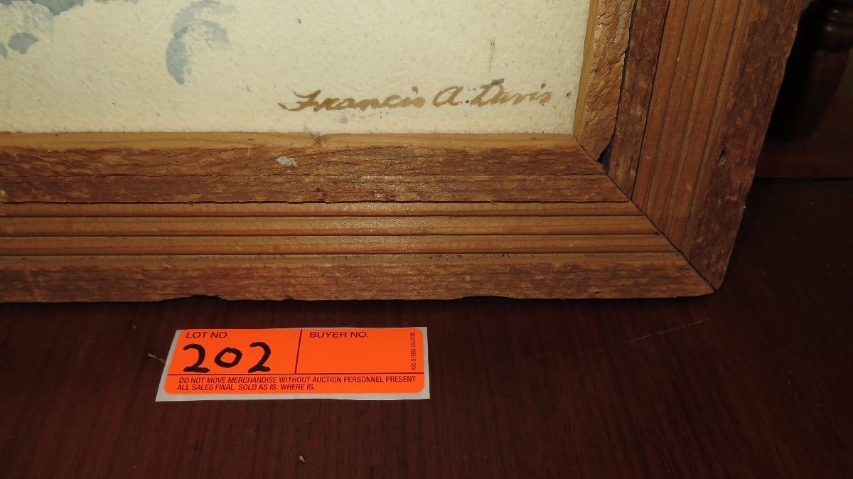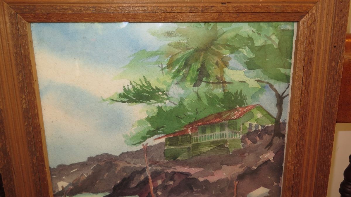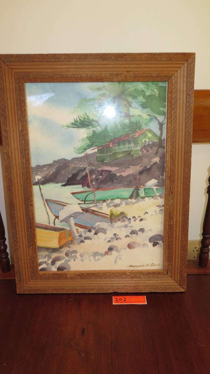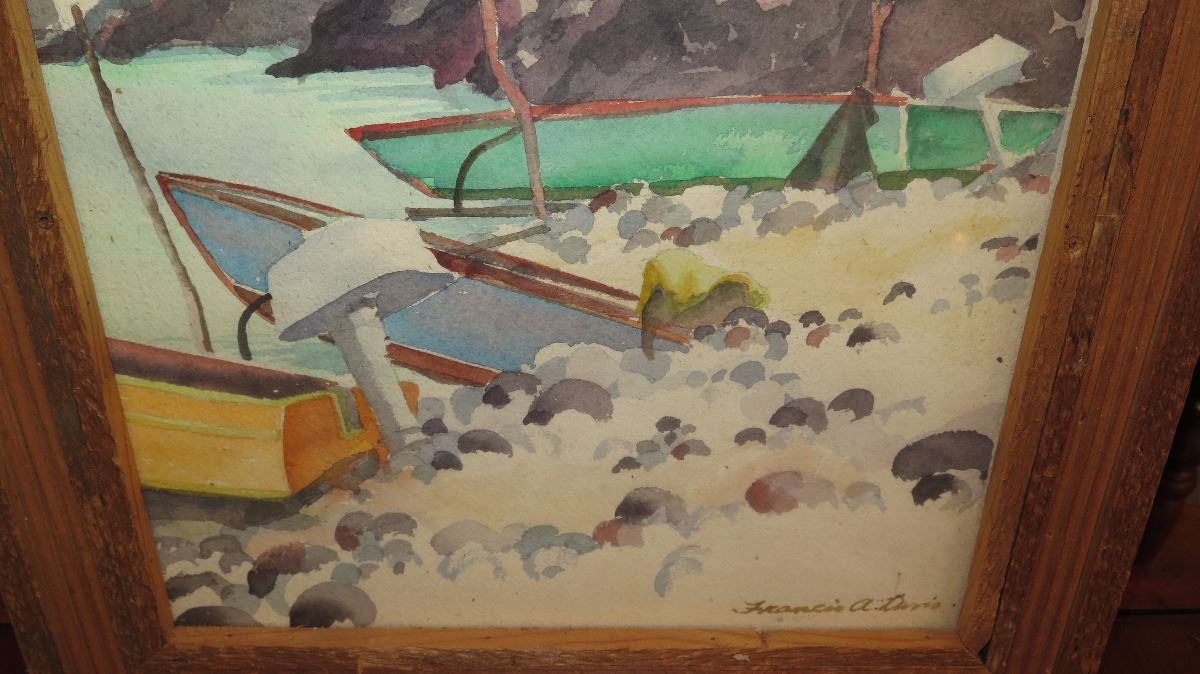 Framed Original Watercolor: Seaside House with Boats - by Francis A. Davis 24X18