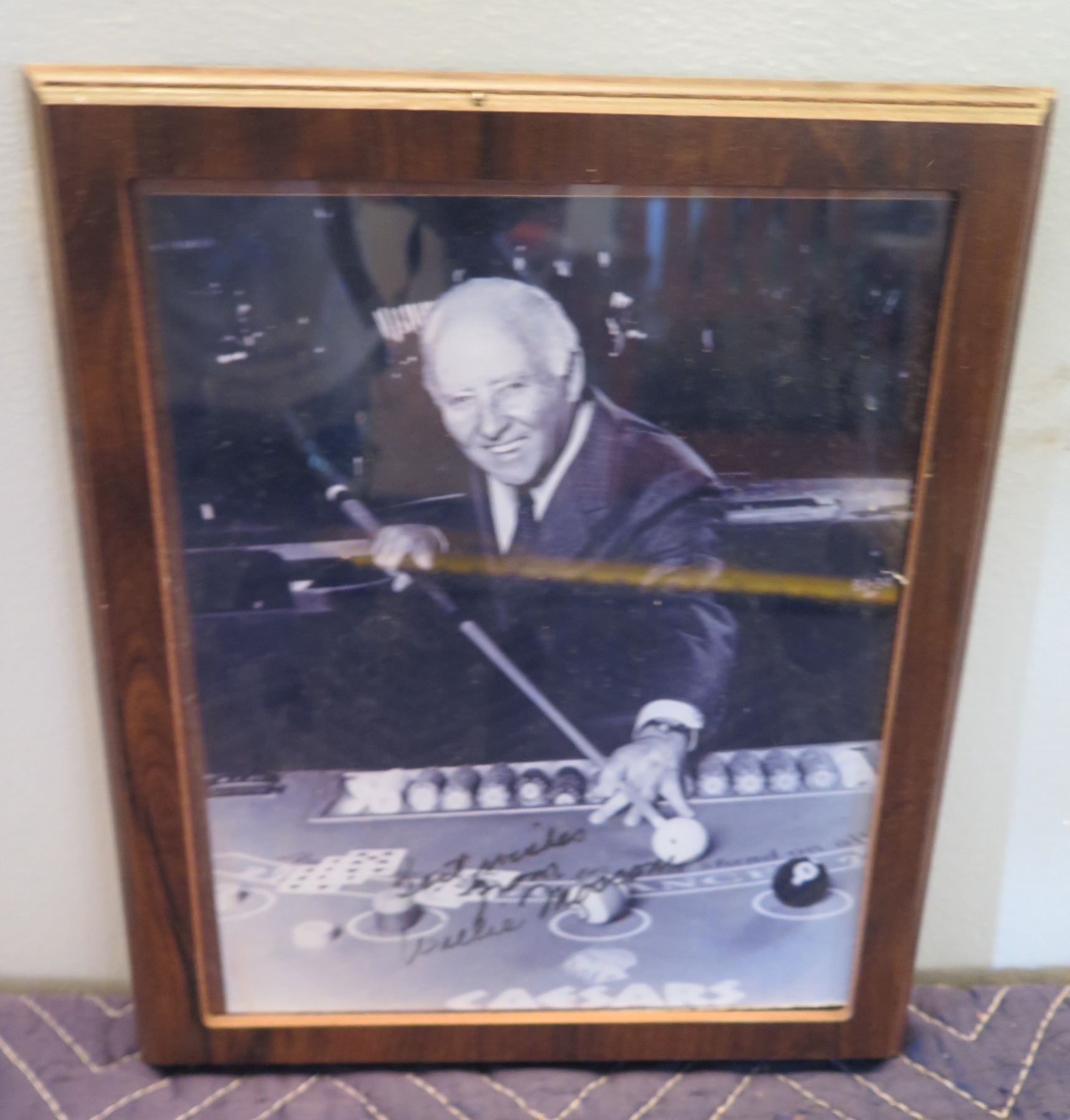 Framed Photo Billiard Pool Themed Willie Mosconi Signed 12"x9"