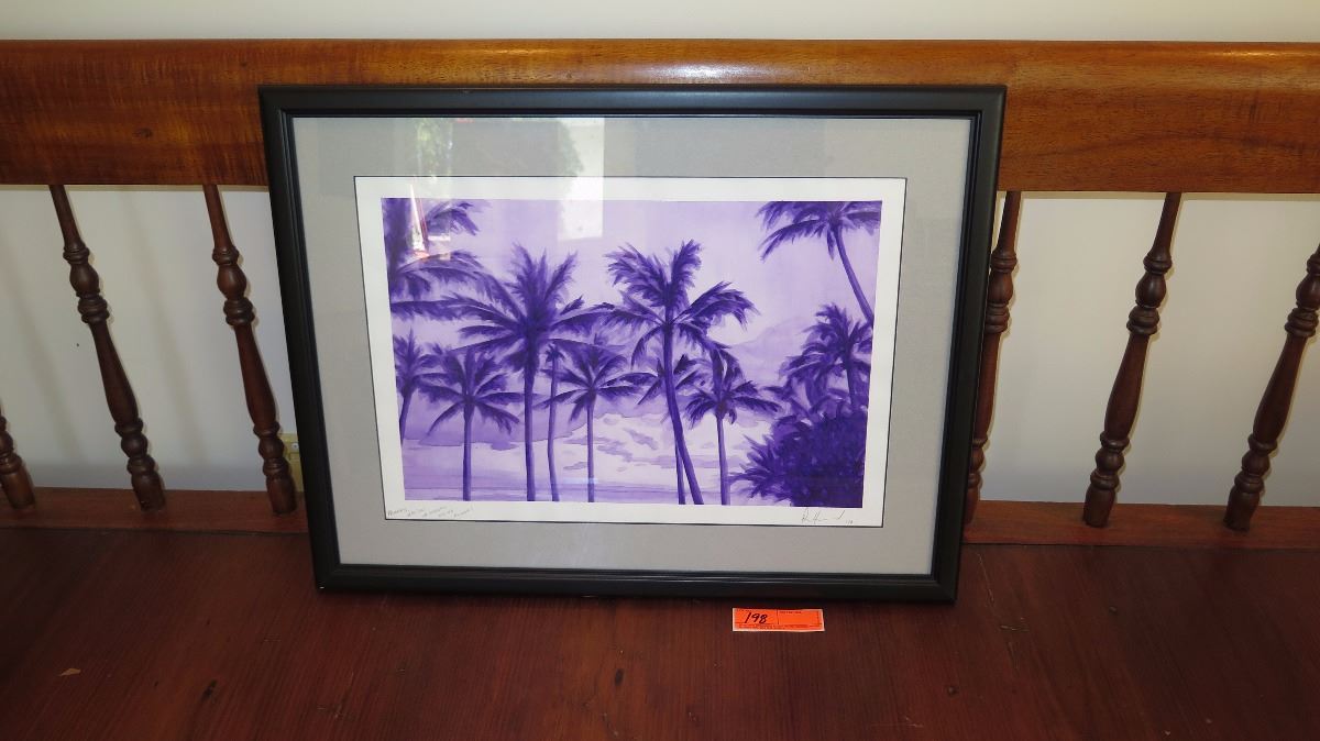 Framed Watercolor - Palm Trees at Dusk - Signed 27X20
