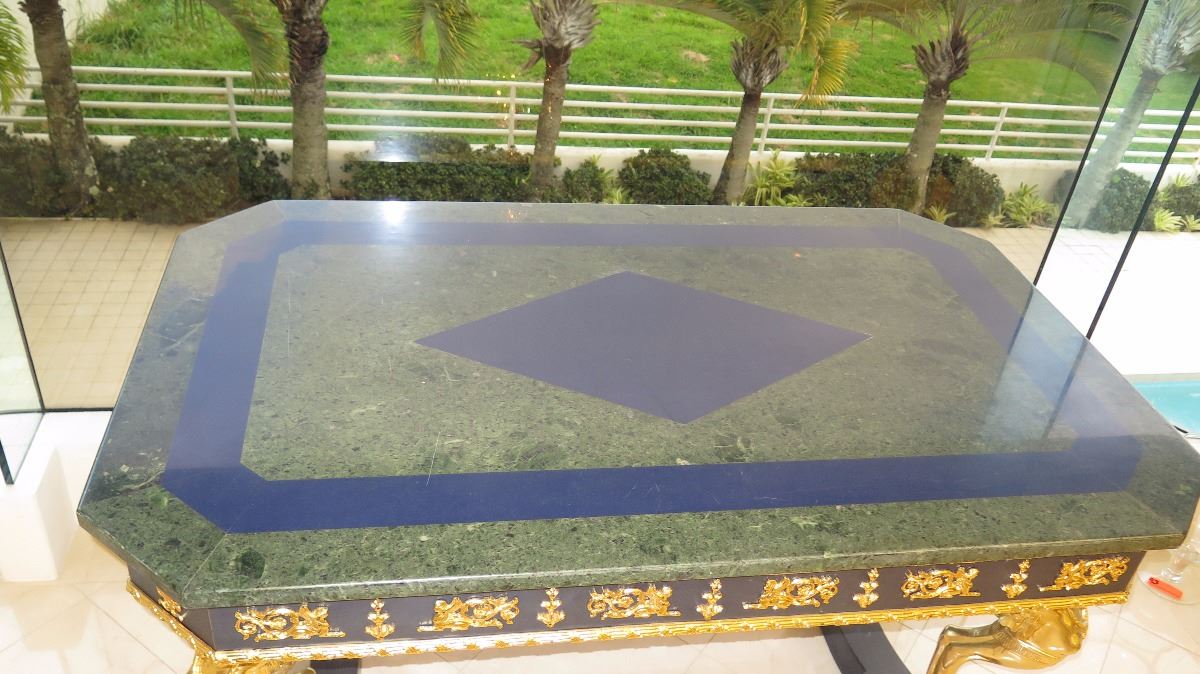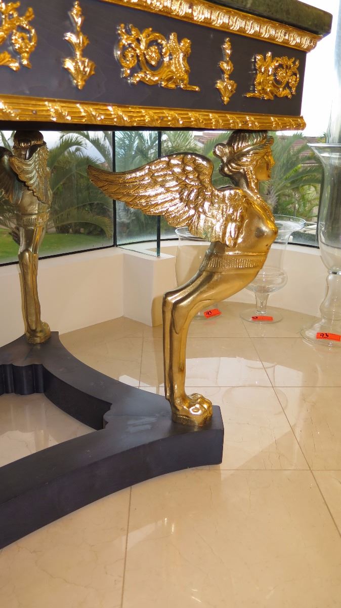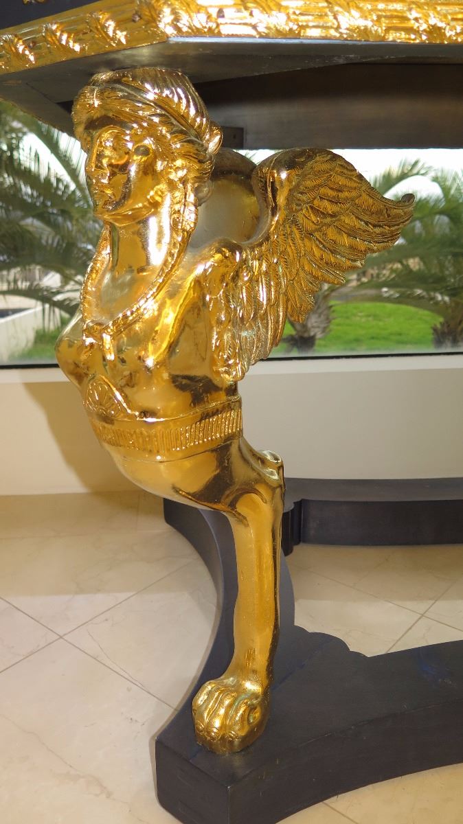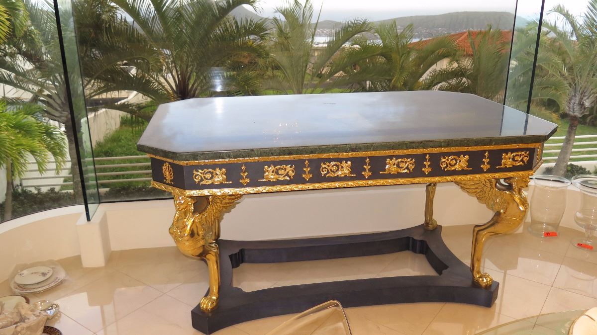 French Empire Style Table w/ Gilt Ornamentation and Solid Stone Top - Approx. 69" L, 43" W