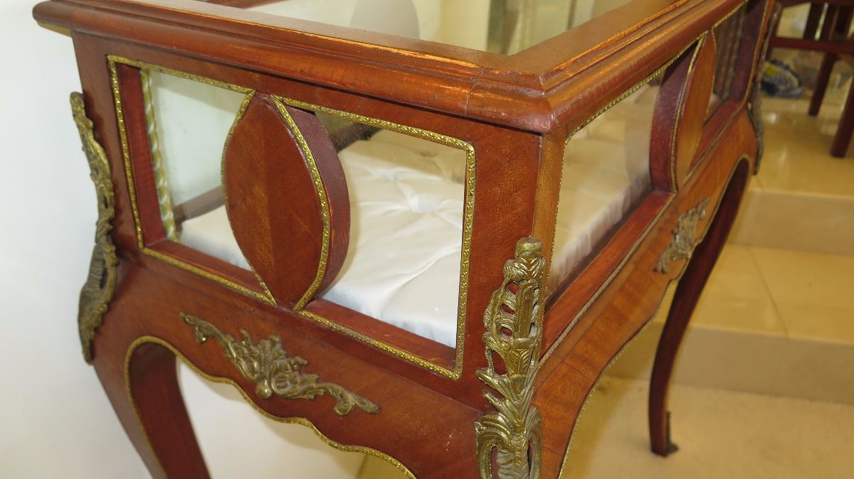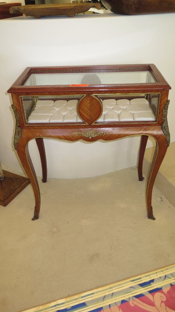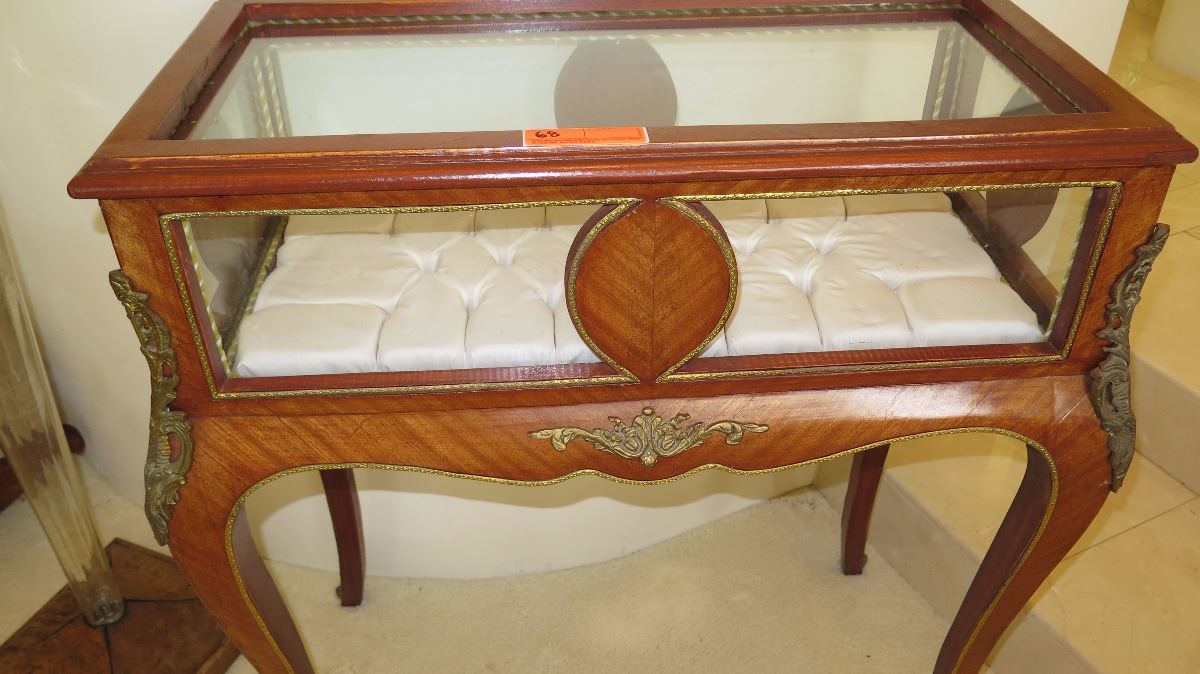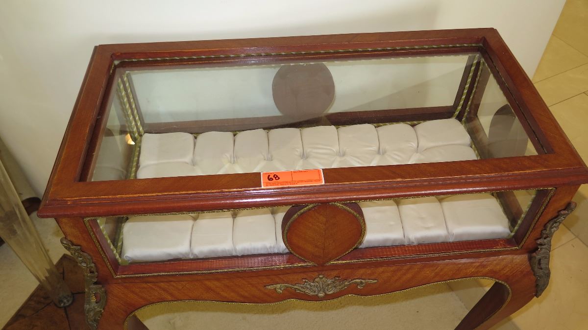 French Glass-Top Display Case Menagerie w/Gilt Ornamentation (32x16x36)