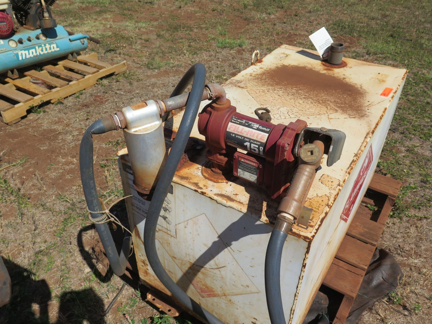 Fuel Transfer Tank w/ Fill-Rite 12V DC Pump (Tank has small leak, repairable)