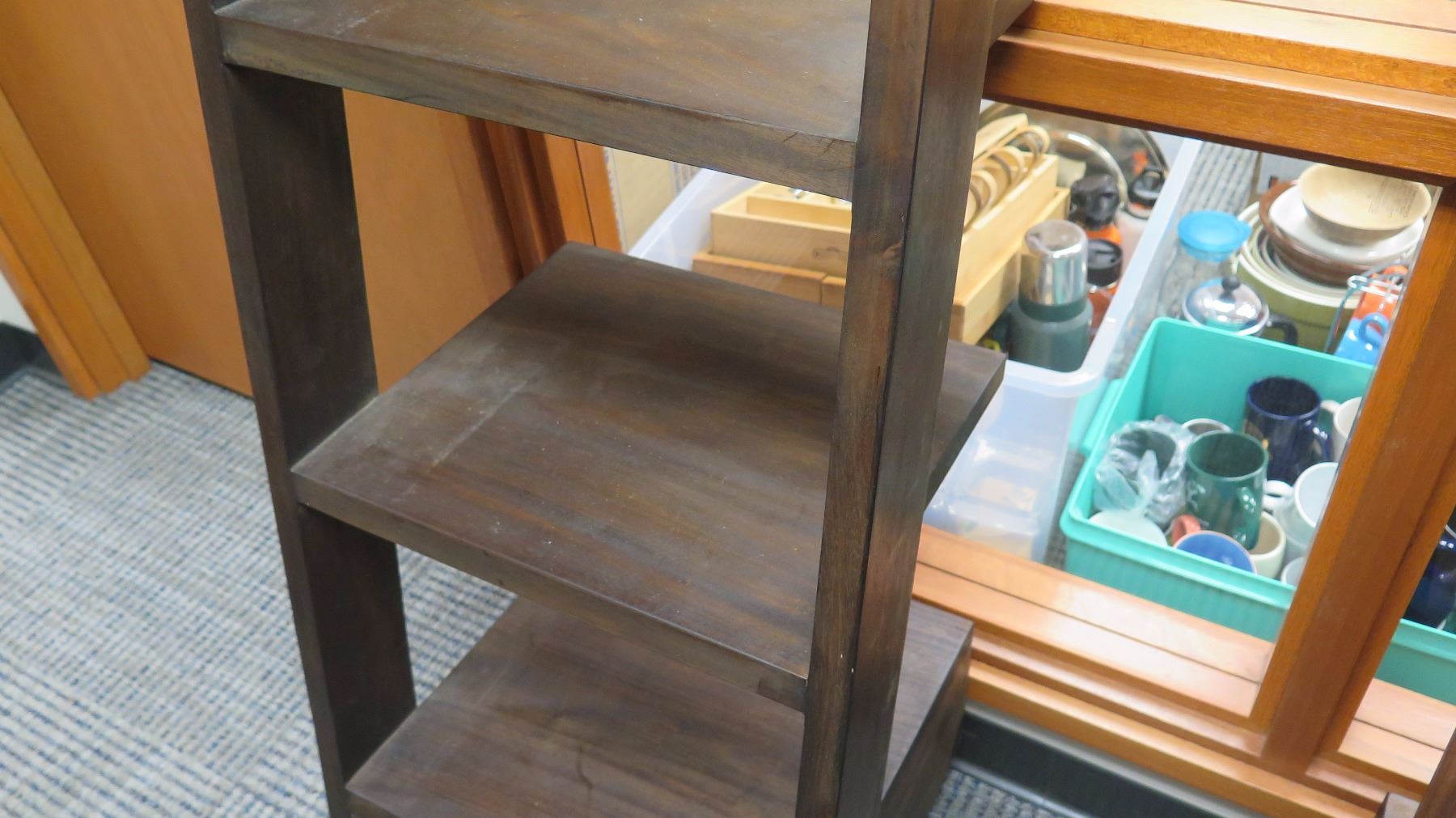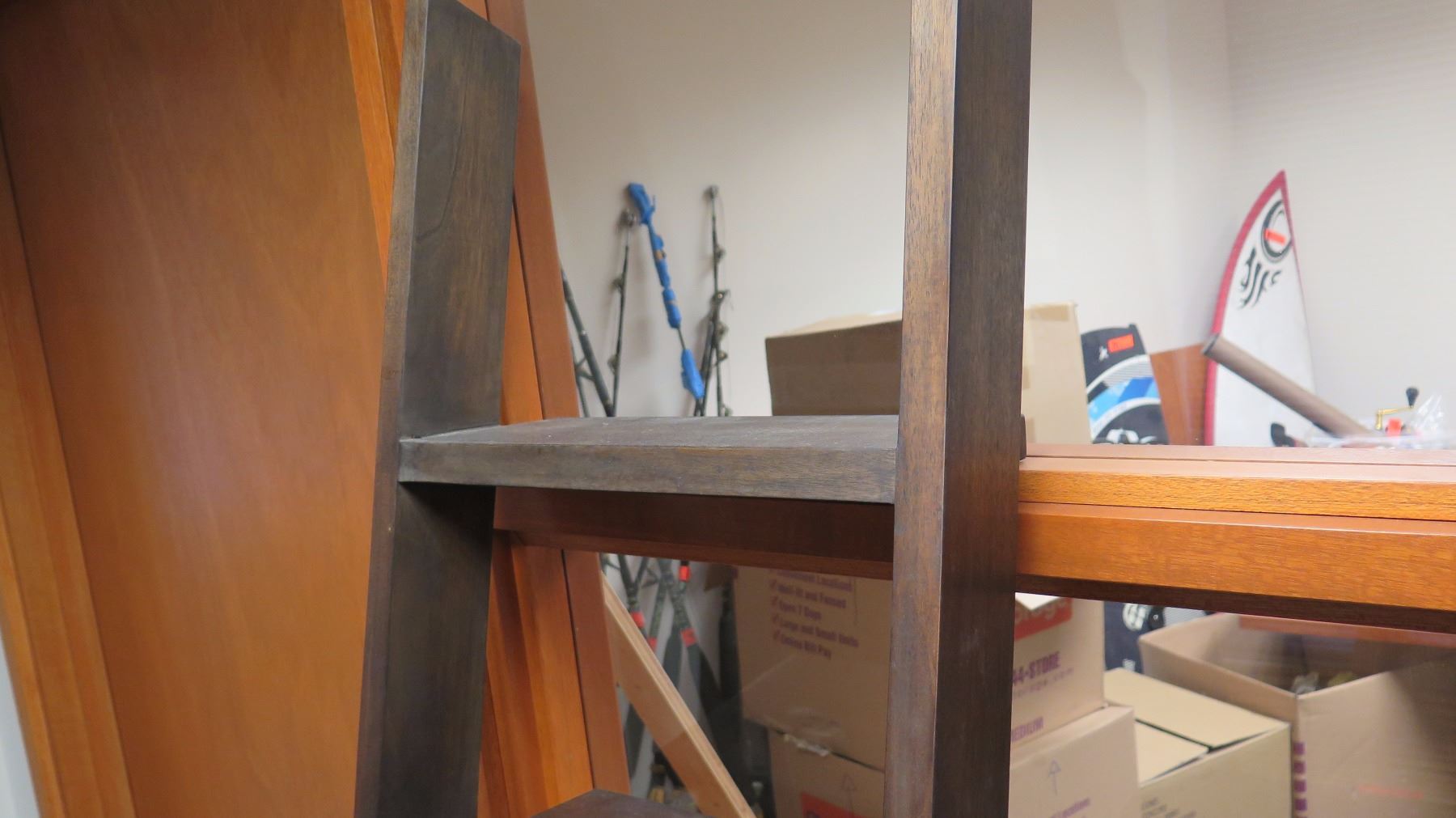 Furniture - Wooden Shelving Unit, 5-Shelves, Bottom Drawer, Ladder-Style, Dark Hardwood Approx 17"