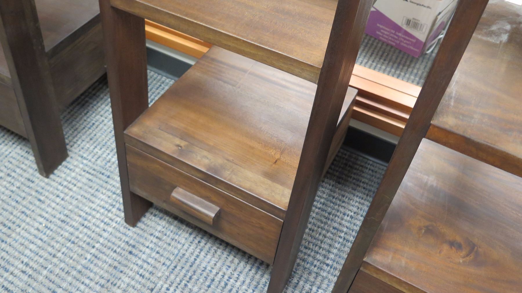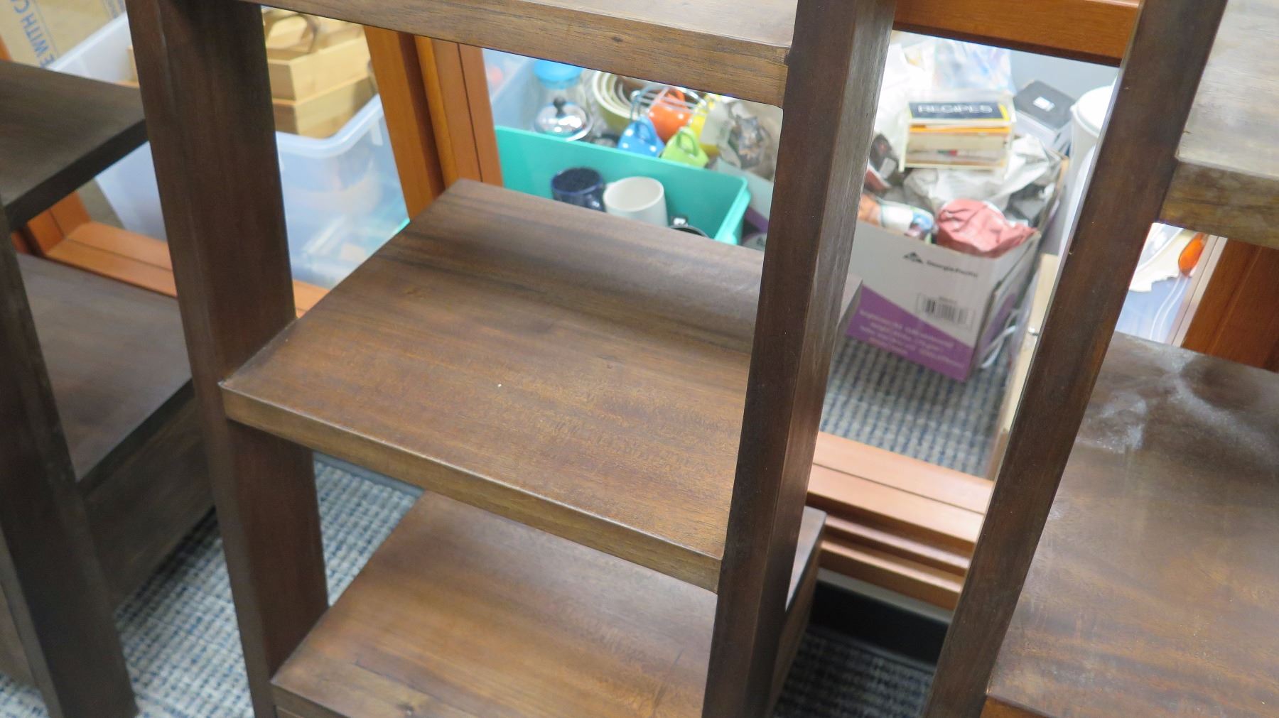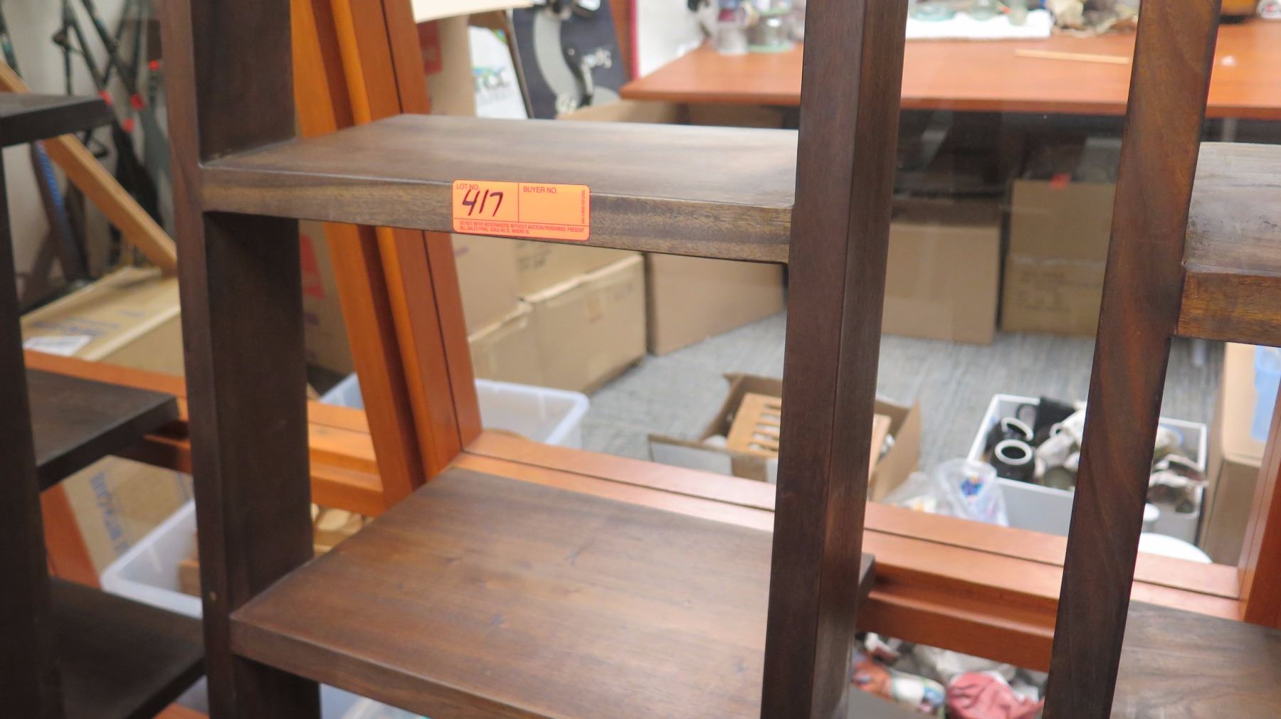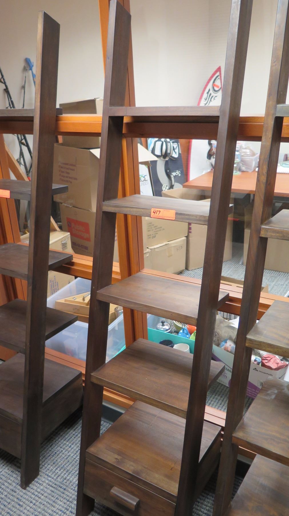 Furniture - Wooden Shelving Unit, 5-Shelves, Bottom Drawer, Ladder-Style, Dark Hardwood Approx 17"