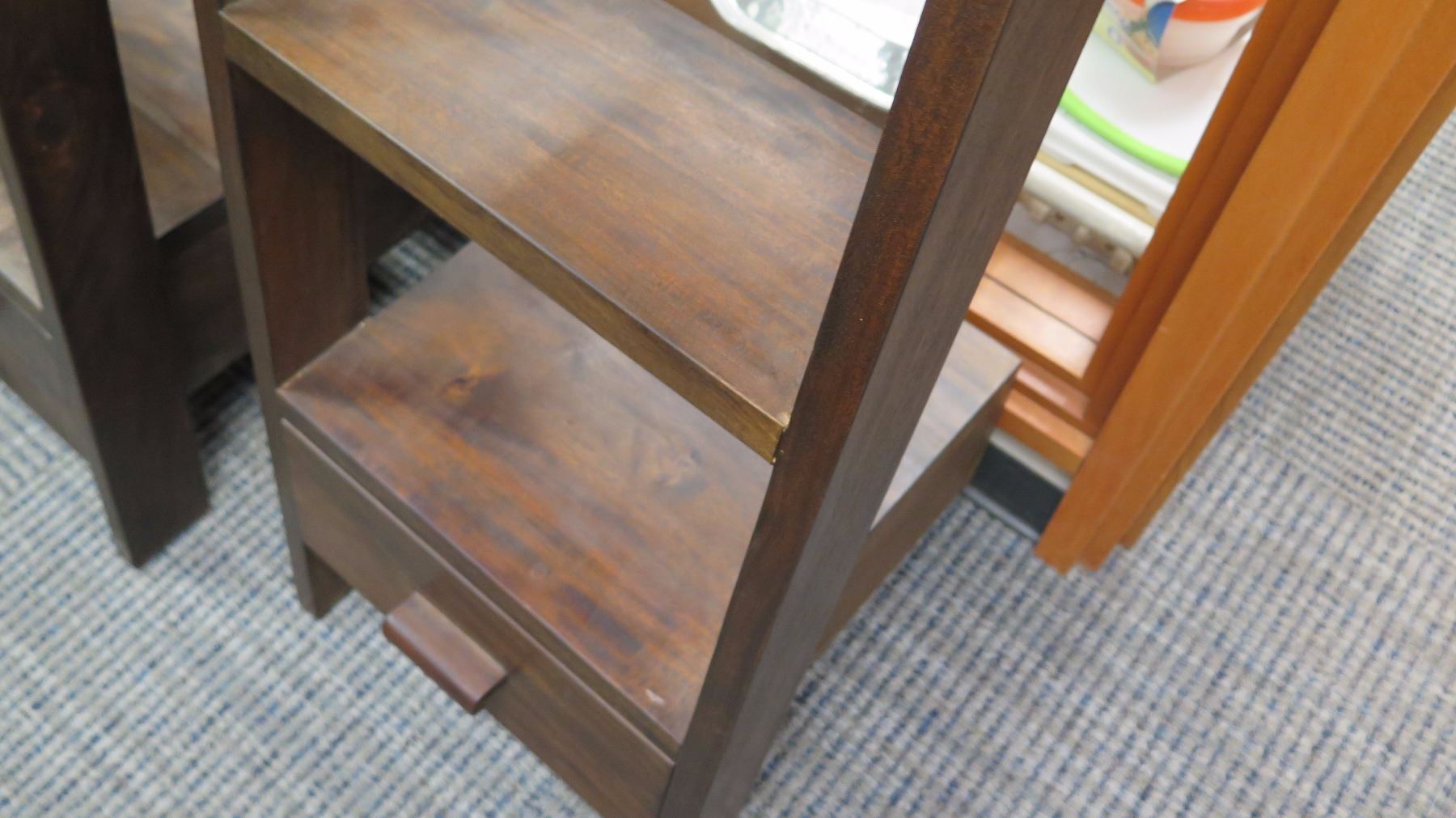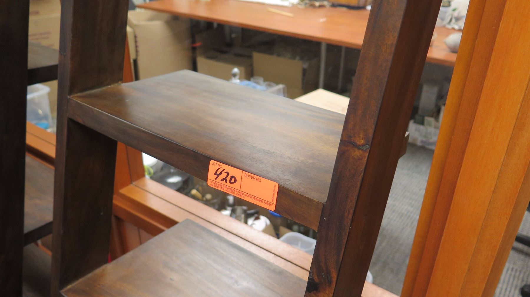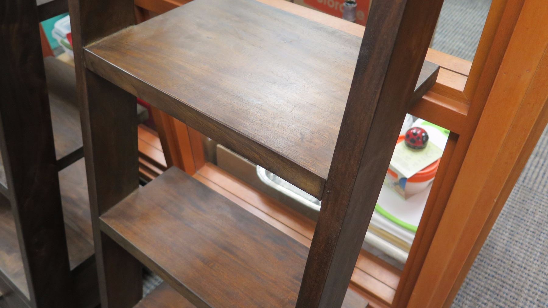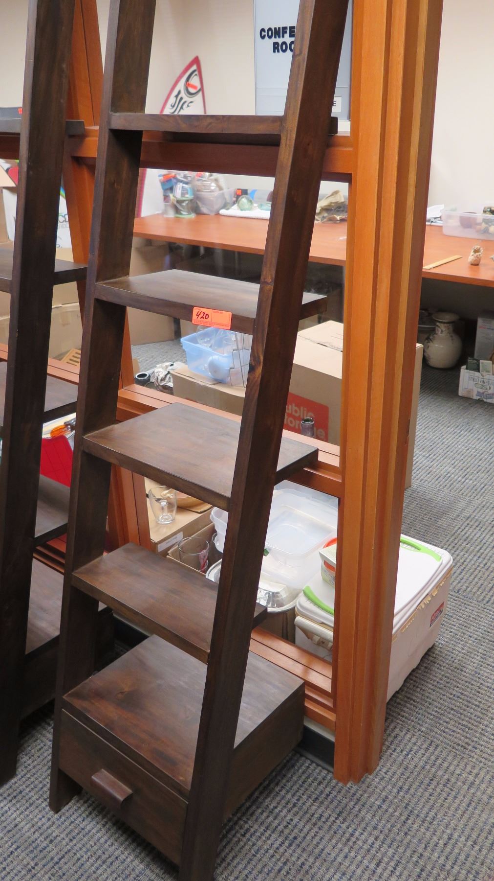 Furniture - Wooden Shelving Unit, 5-Shelves, Bottom Drawer, Ladder-Style, Dark Hardwood Approx 17"