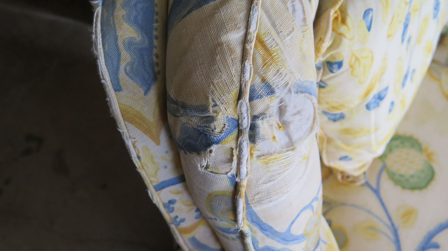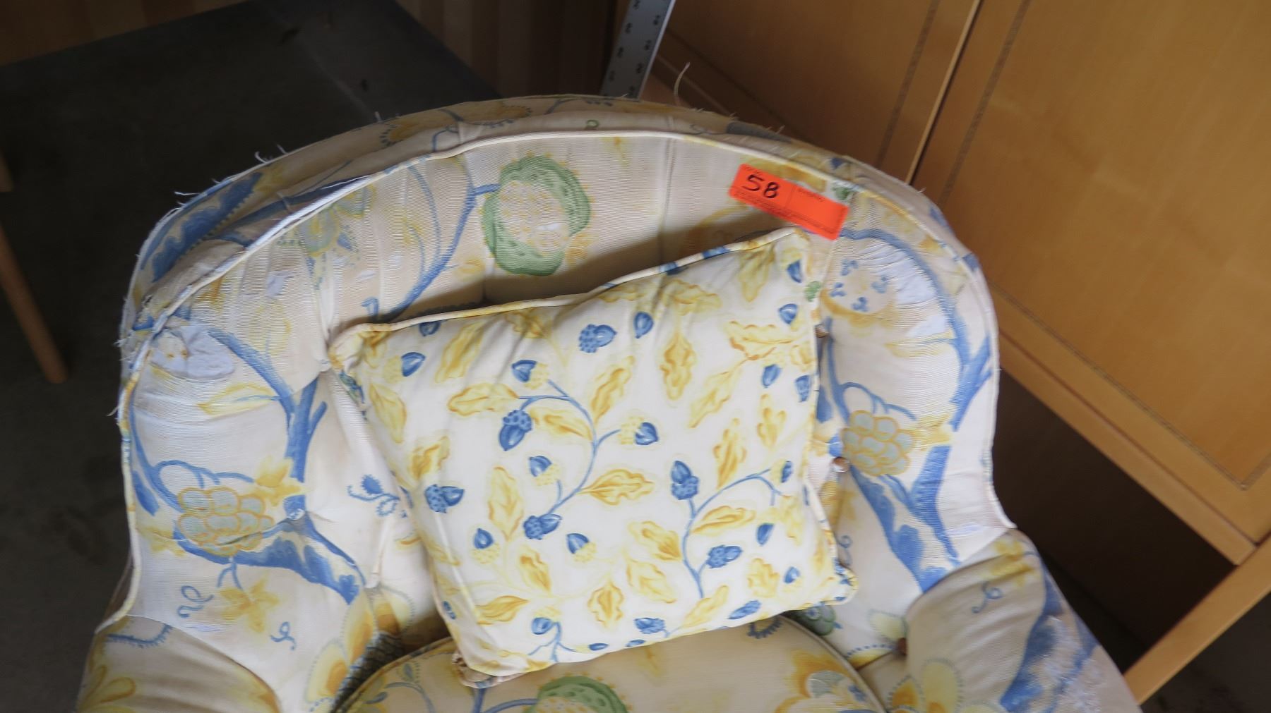 Furniture - Yellow and Blue Floral Patterned Armchair Approx. 30"W, 30"H