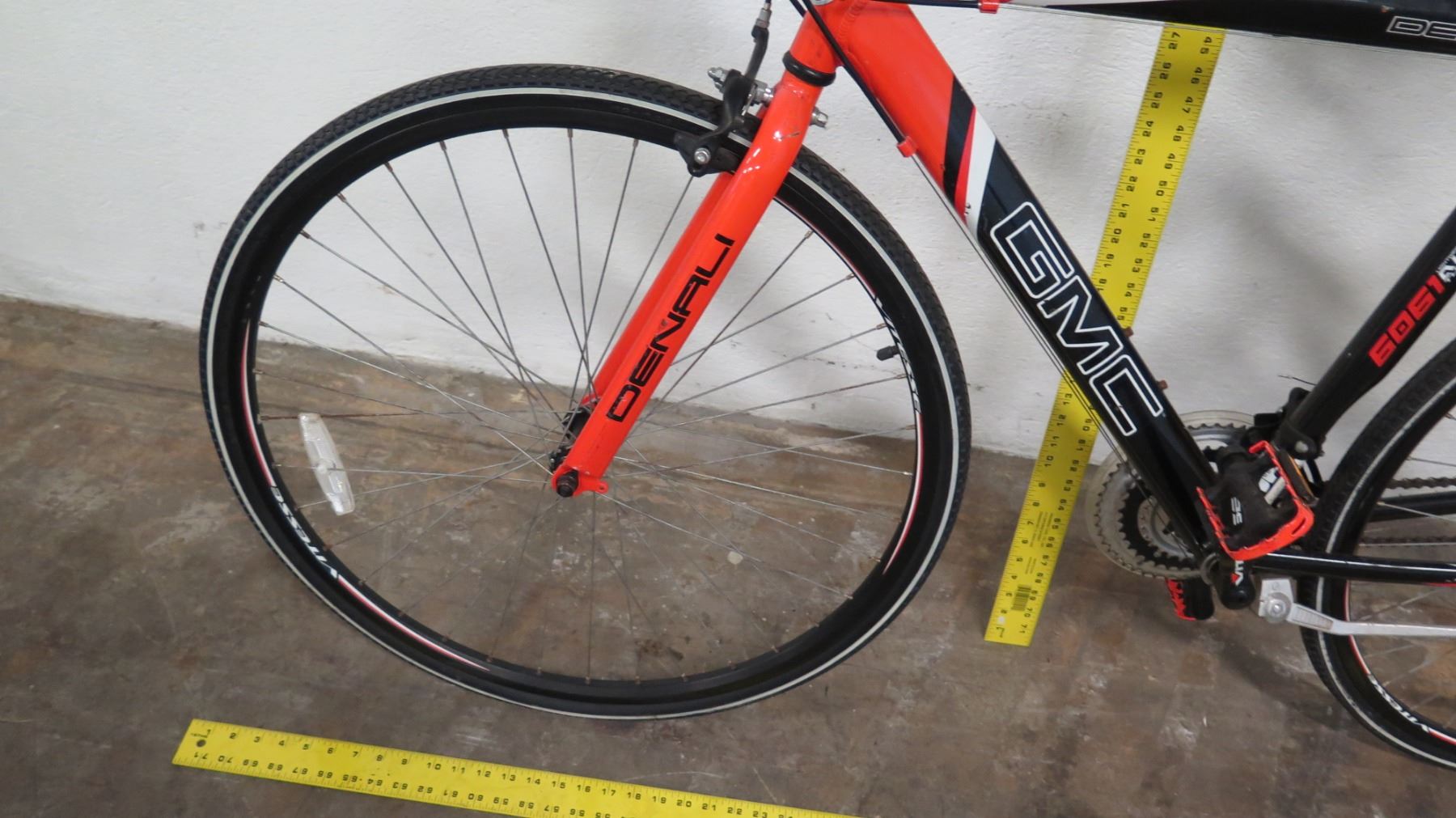 GMC Denali Road Series Racing Bike, Shimano Rivo Shift, Red Black. Bikes have been in storage at the HPD warehouse for some time and will need to have tires inflated and basic maintenance done. May be missing parts.